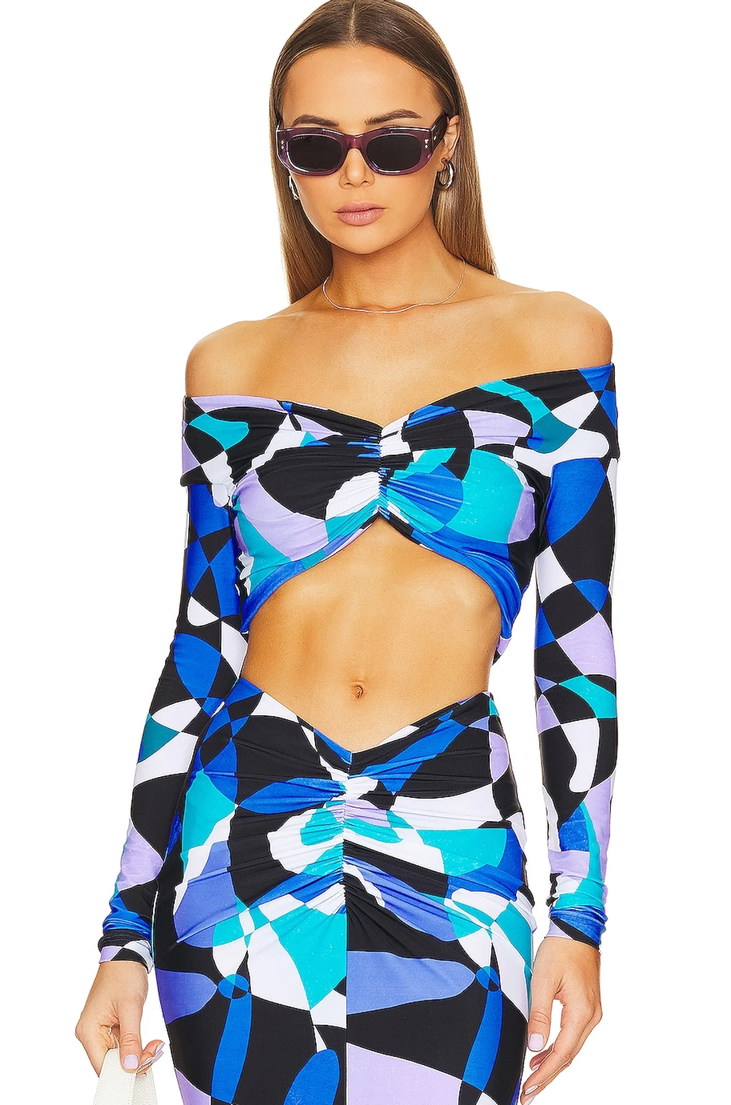 80% polyamide 20% elastane.Made in Turkey.Dry clean only.Off-the shoulder styling.Twisted fabric at bust.Item not sold as a set