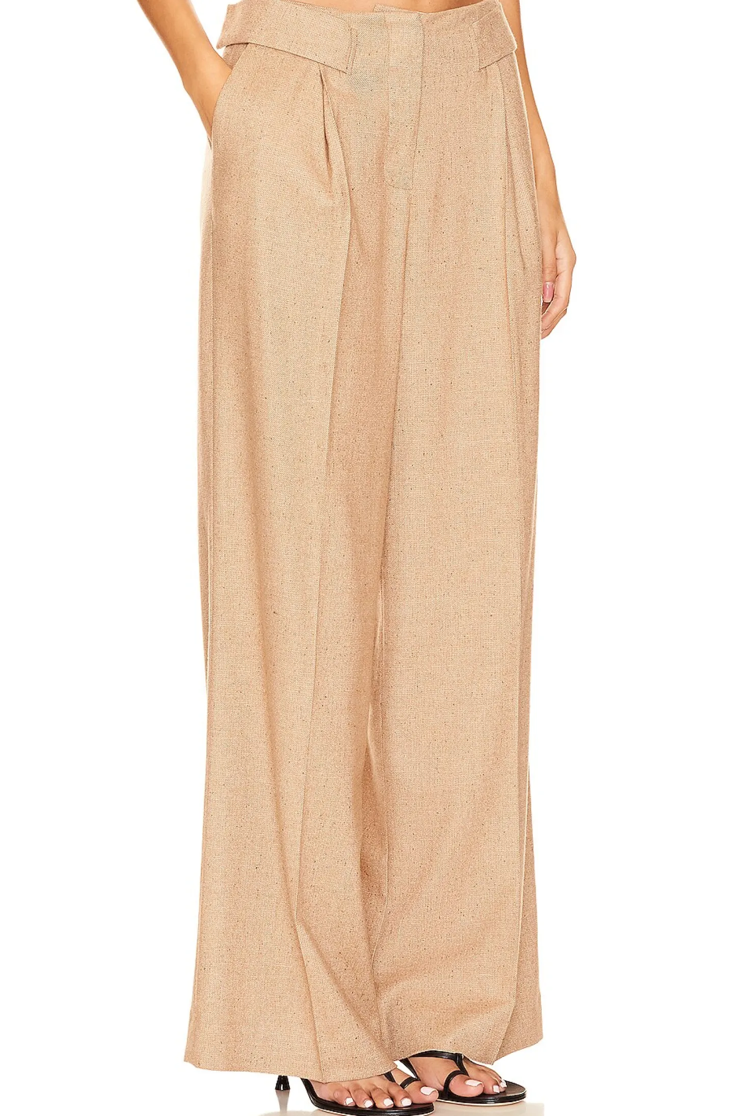 Self: 40% viscose 28% polyester 23% wool 6% polyamide 2% silk 1% elastane Lining: 95% polyester 5% elastane.Made in Portugal.Dry clean only.Zip fly with hook and bar closure.4-pocket design.Front pintuck detail.Lightweight linen fabric.22" at the knee and 22" at the leg opening