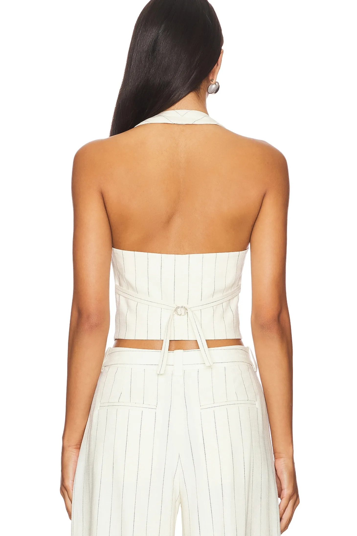 Self: 91% viscose 8% polyester 1% elastane Lining: 51% polyester 49% cotton.Made in Vietnam.Dry clean only.Front button closure.Adjustable back strap.Canvas fabric.Item not sold as set