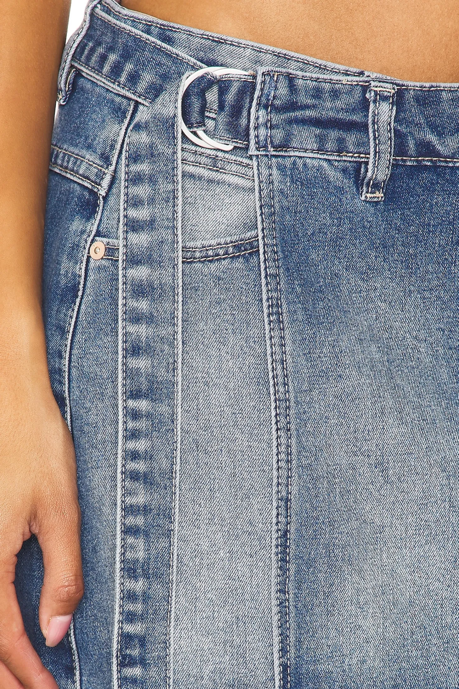 72% cotton 27% polyester 1% elastane.Made in China.Machine wash.Unlined.Wrap style with strap closure.5-pocket design.Item not sold as set.Skirt measures approx 14" in length