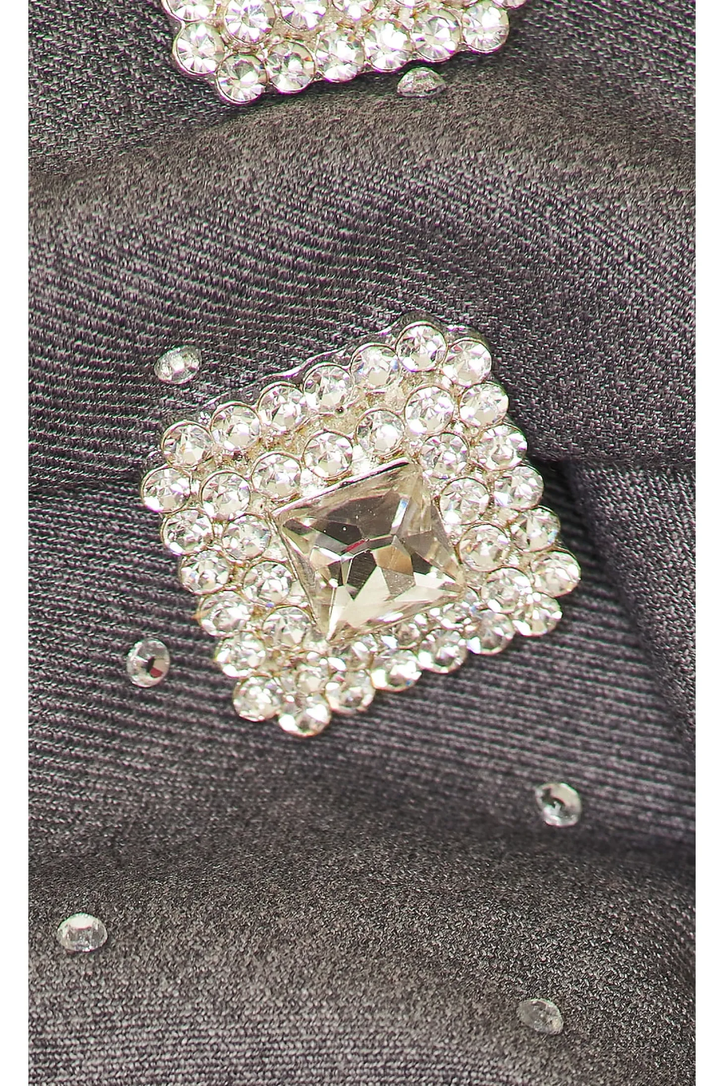 Introducing the Lovers and Friends Amory Top in sleek grey. Tailored suiting fabric meets exquisite embellishments and a ruched accent, offering a sophisticated yet dazzling touch. Transition effortlessly from office elegance to nighttime allure with this versatile piece..Self: 80% tencel 20% rayon Lining: 100% polyester.Made in China.Hand wash.Hidden back zipper closure.Boned bodice and draped side with embellished buttons.Embellished suiting fabric Item not sold as set