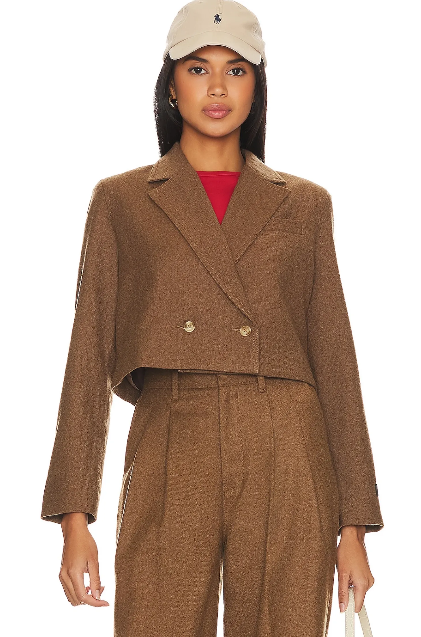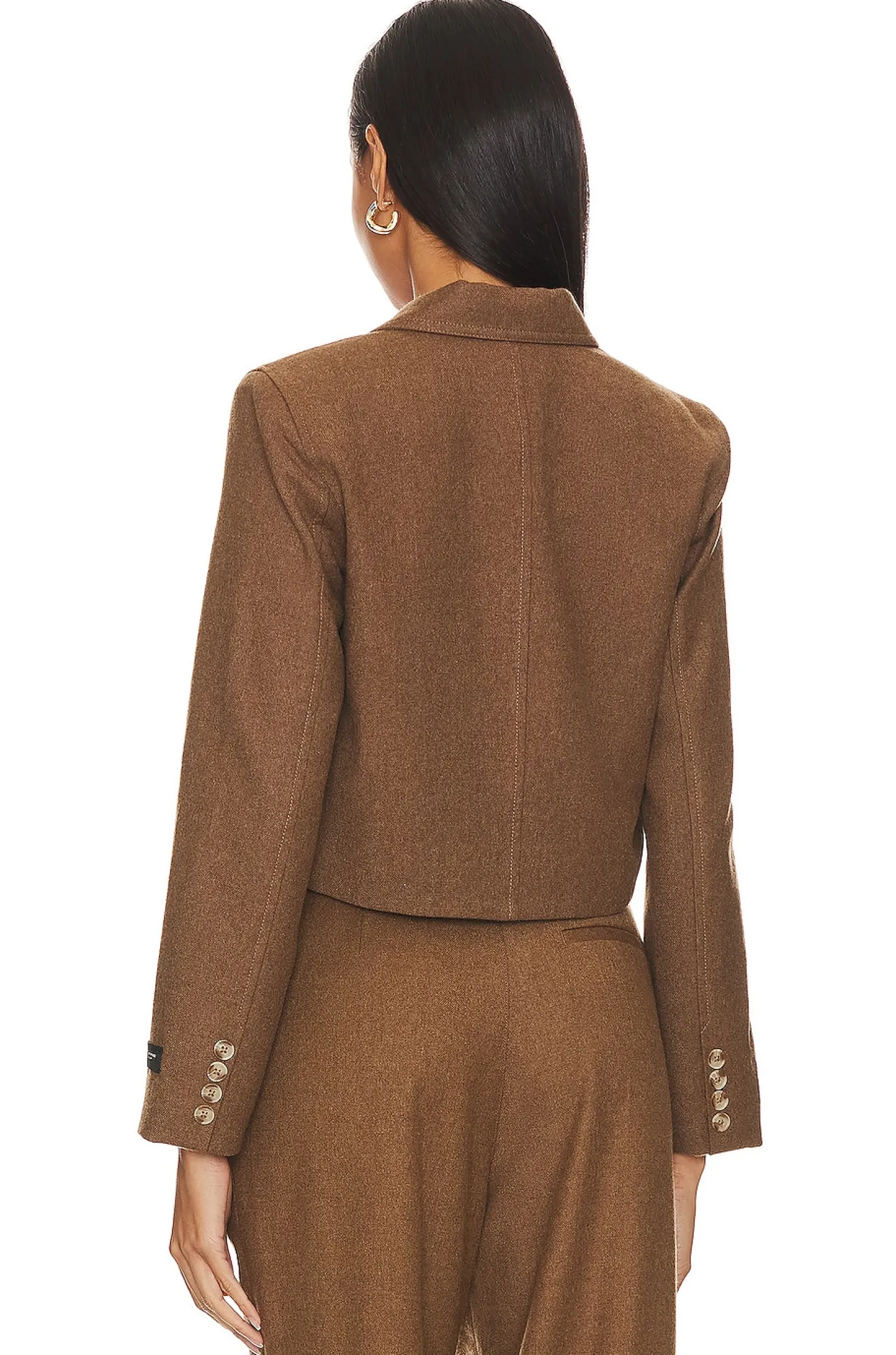 100% wool.Made in India.Dry clean only.Front button closure.Singular breast pocket.Padded shoulders with buttoned cuffs.Wool twill fabric.Item not sold as a set