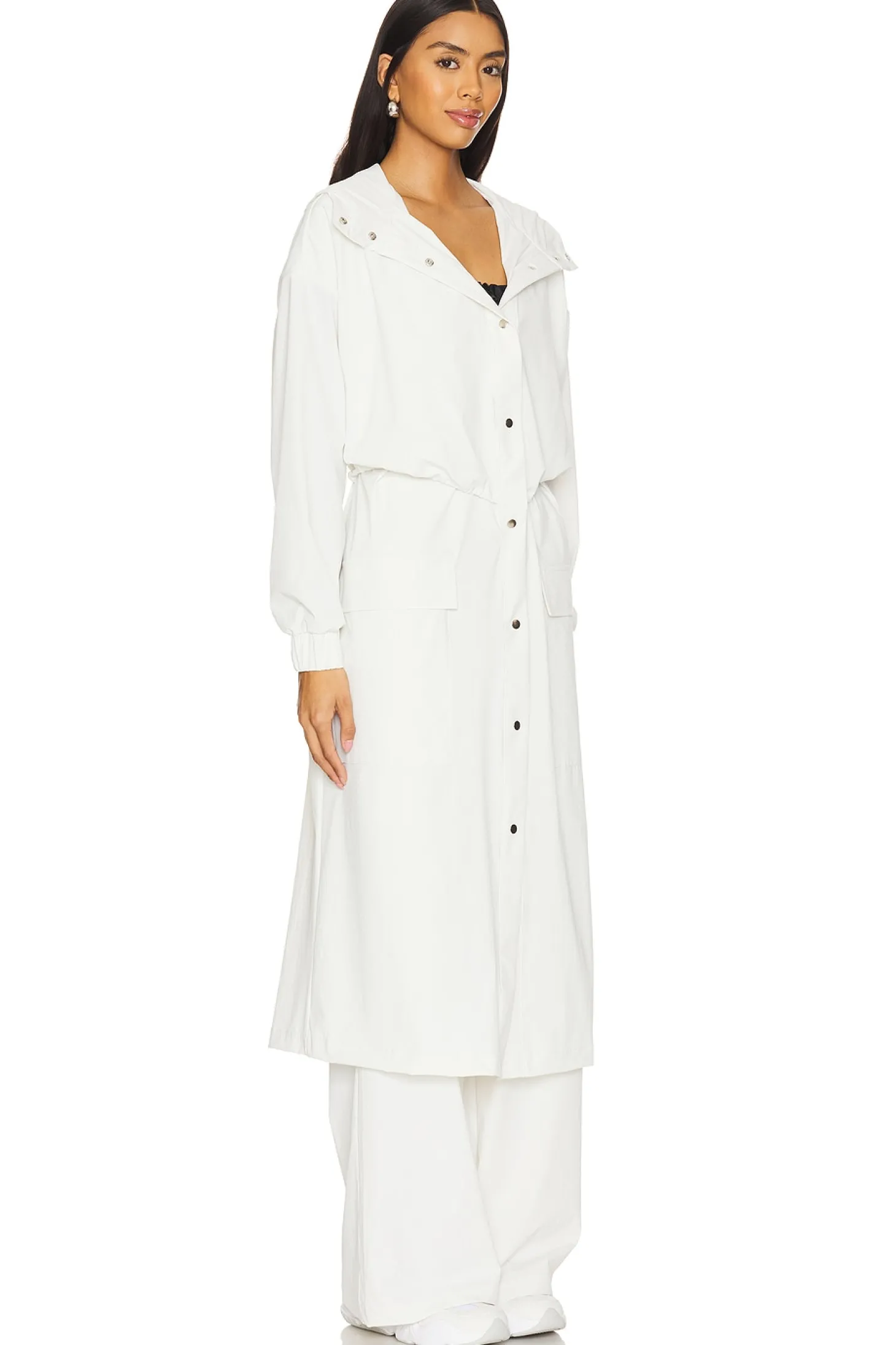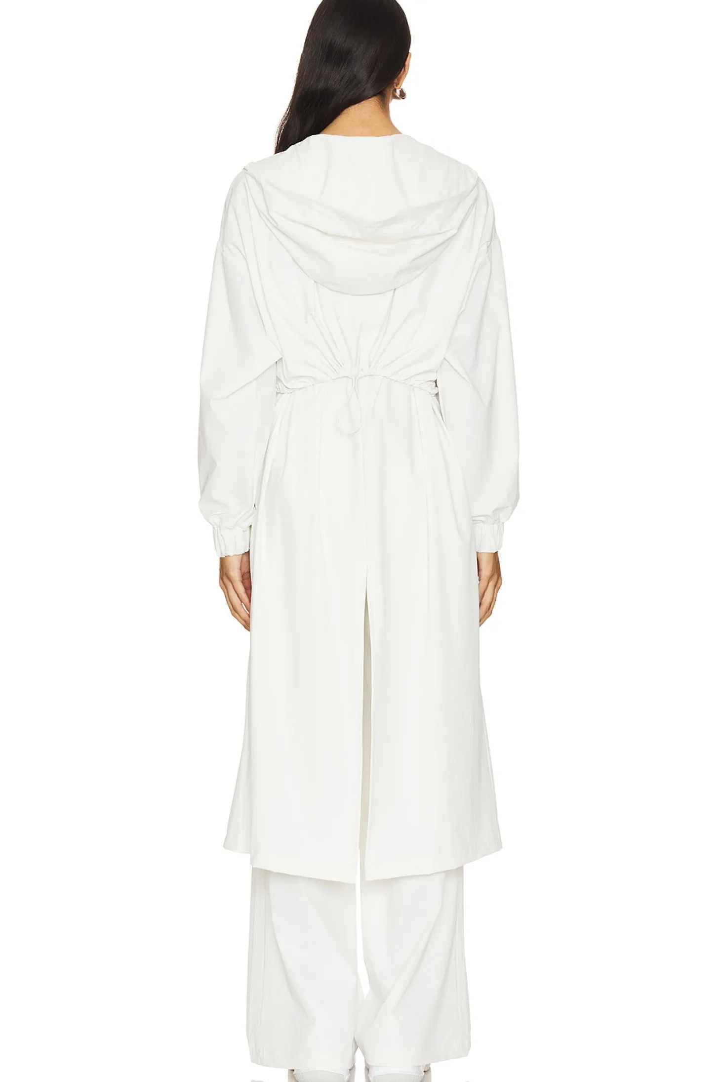 86% nylon 14% spandex.Made in USA.Hand wash.Front snap closure.Front flap pockets Attached hood and back vent Adjustable back drawcord.Lightweight ripstop fabric Item not sold as a set