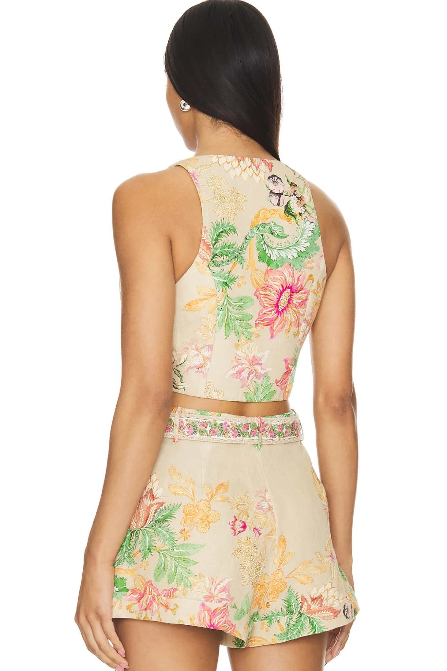 Self: 55% cotton 45% linen Lining: 100% cotton.Made in India.Dry clean.Front button closure