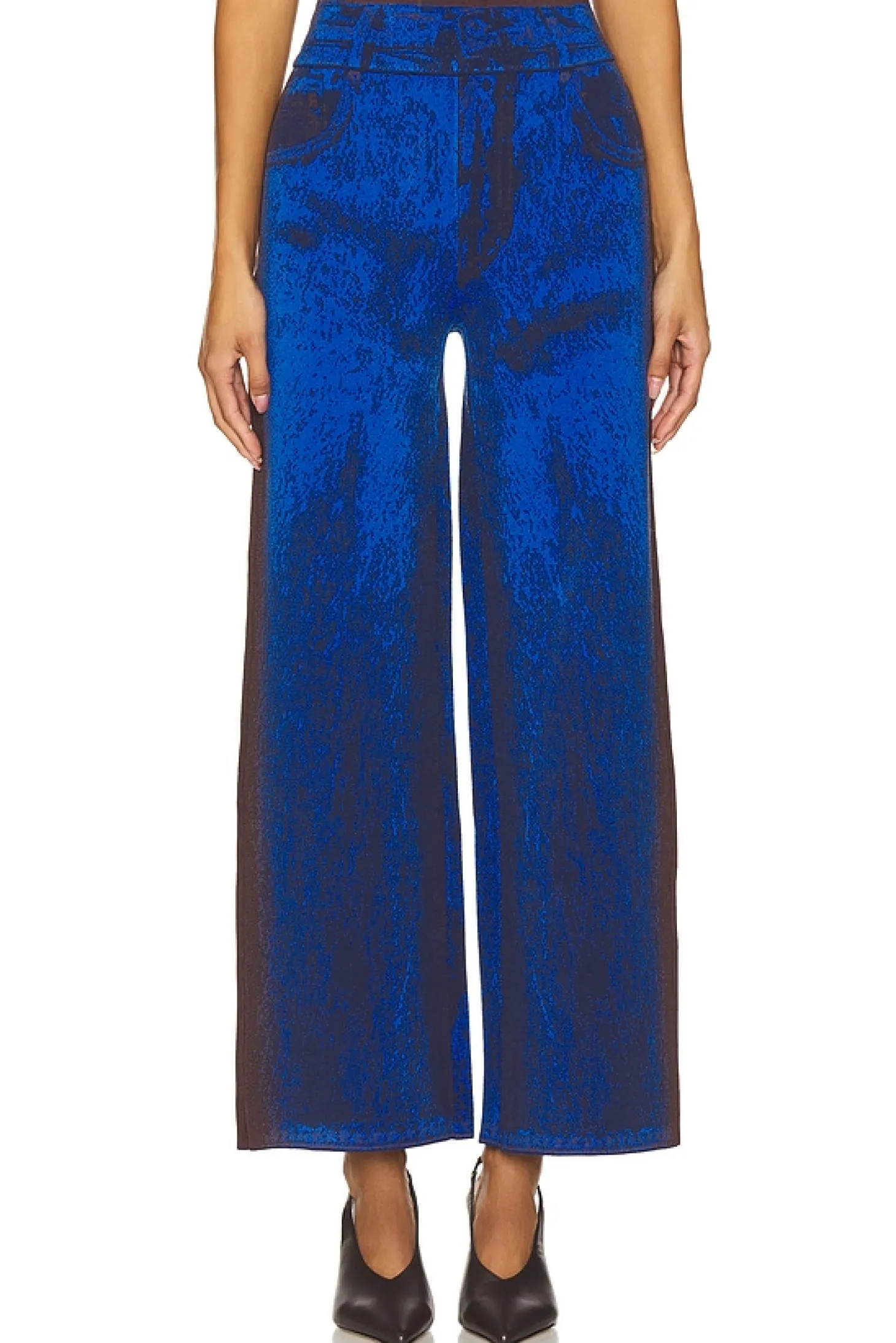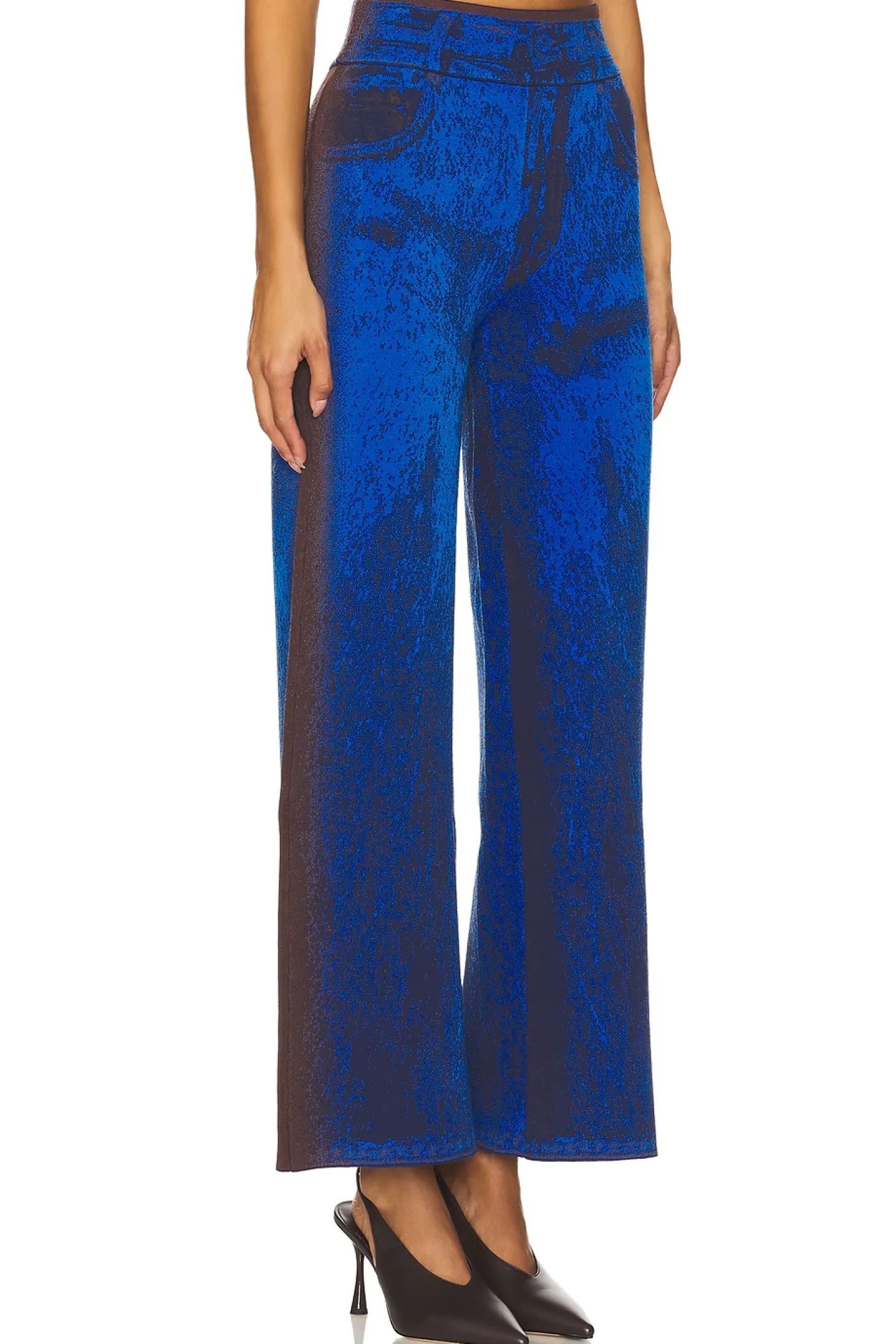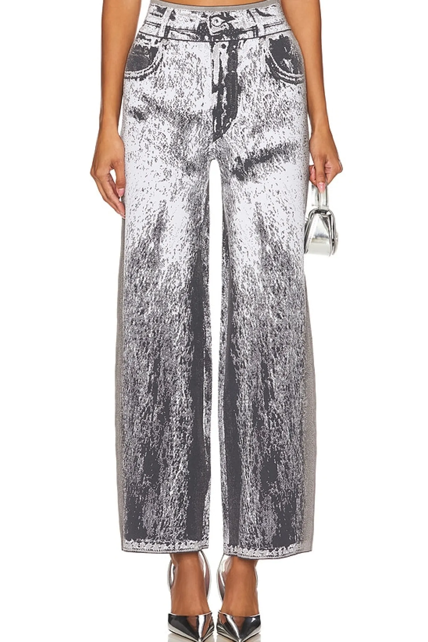73.85% modal 26.2% polyester.Made in China.Machine wash.Pull-on styling.Back tab pocket.Ponte fabric with denim print.21" at the knee breaks to 24" at the leg opening