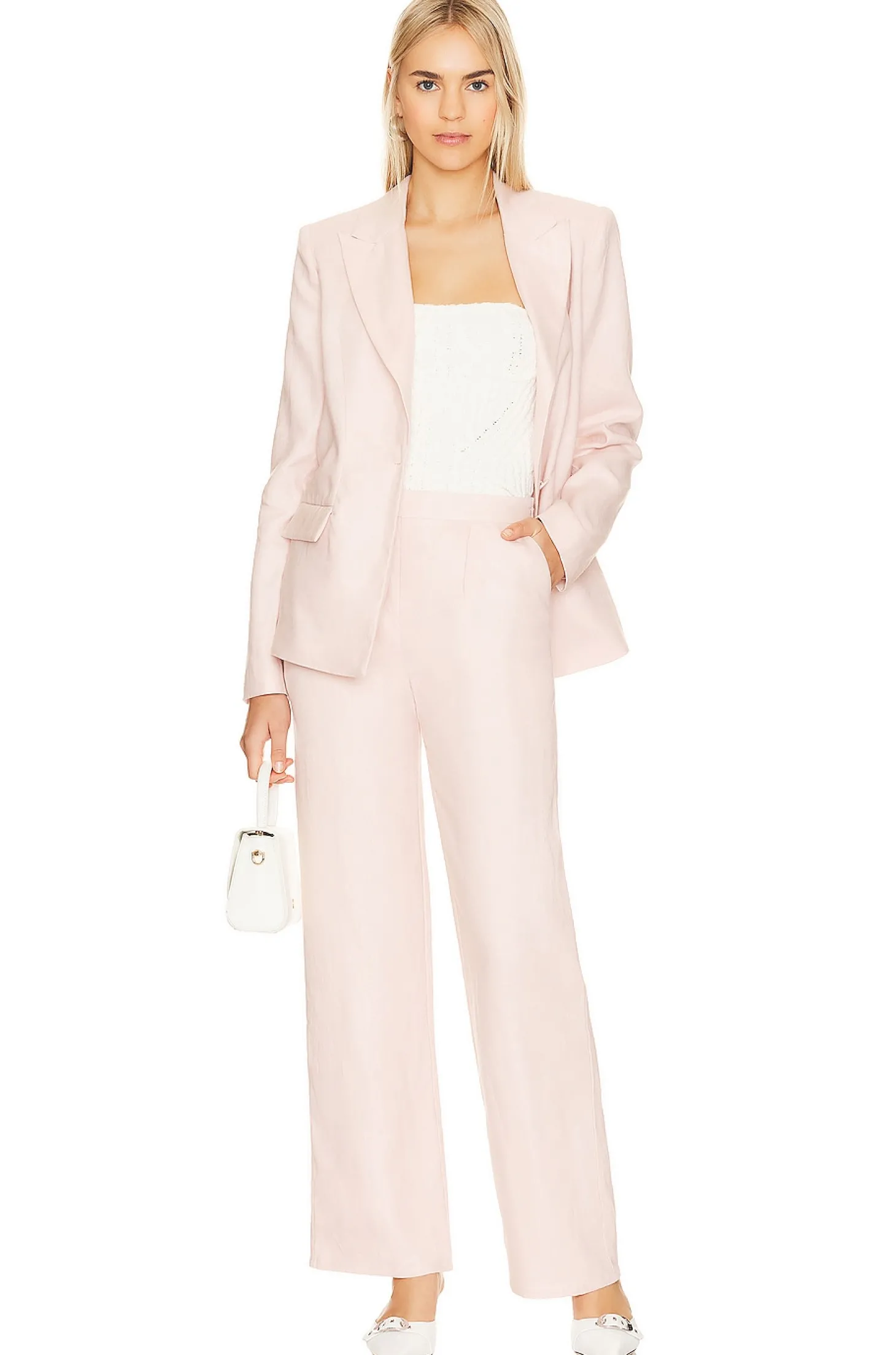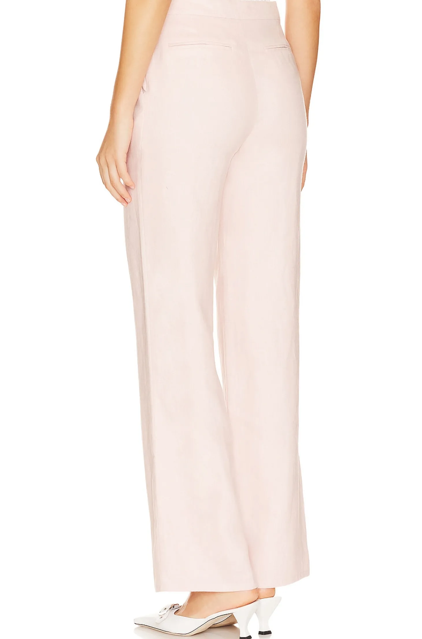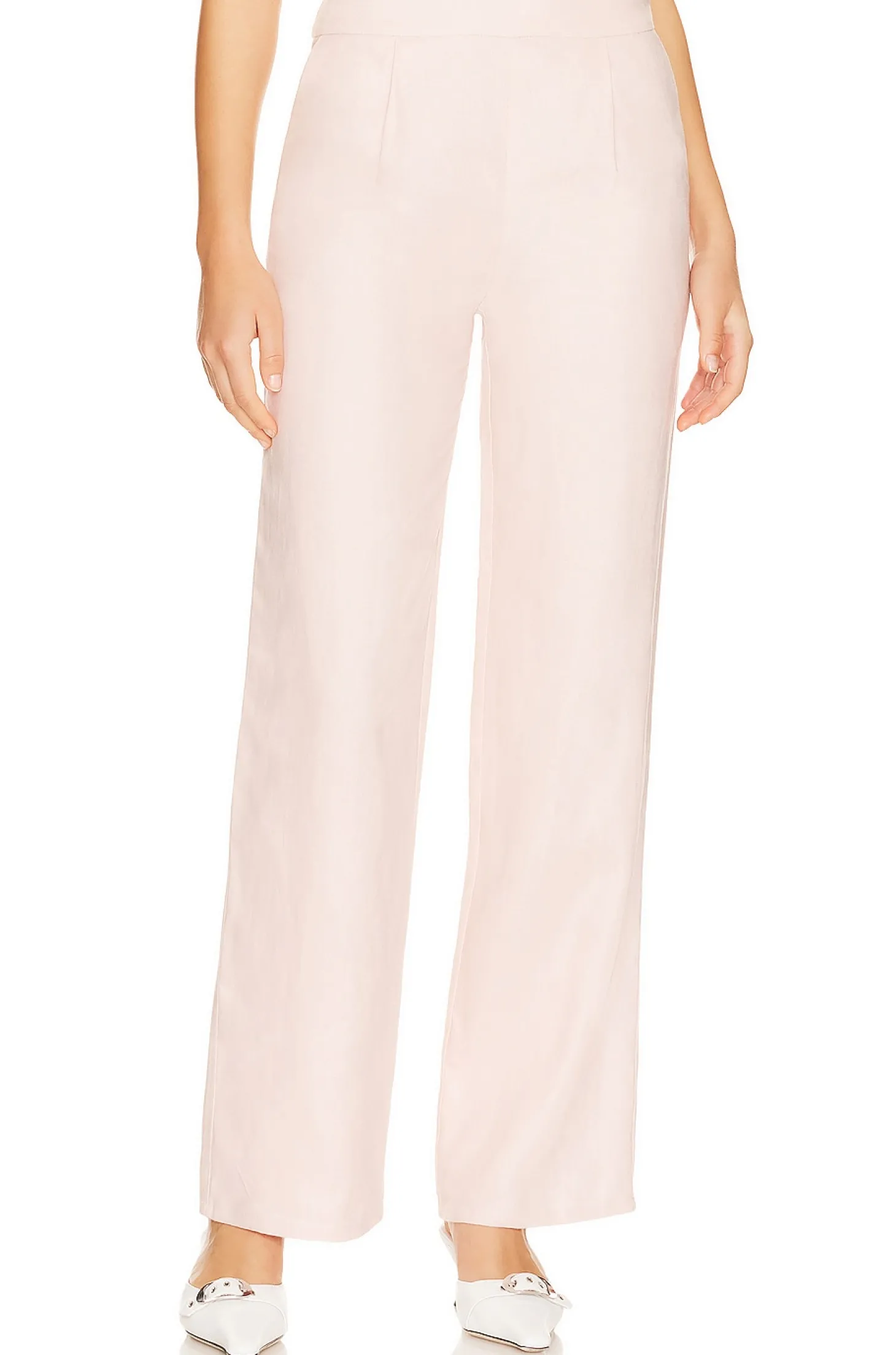 Self: 100% linen Lining: 100% rayon.Made in China.Dry clean only.Hidden side zipper closure.Side slant and back slip pockets.Linen fabric.Item not sold as a set.20" at the knee narrows to 18" at the leg opening