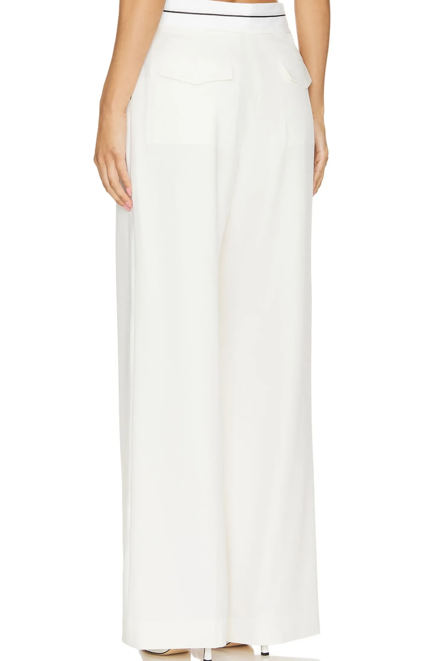 Self: 96% polyester 4% spandex Lining: 55% viscose 45% polyester.Made in China.Dry clean only.Zip fly with hook and bar closure.4-pocket design.Front pintuck detail.Lightweight suiting fabric Item not sold as a set.21" at the knee and 21" at the leg opening