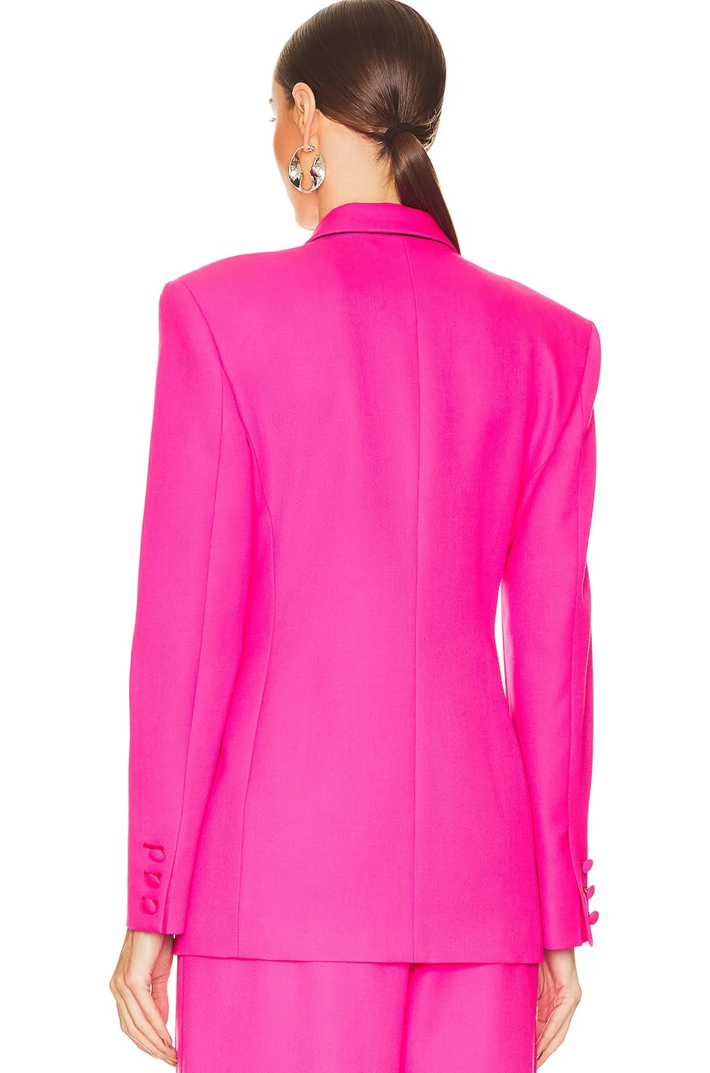 Self: 100% virgin wool Lining: 100% cupro.Made in Slovenia.Dry clean only.Double breasted front button closure.Padded shoulders.Side flap pockets.Buttoned cuffs.Suiting fabric Item not sold as a set