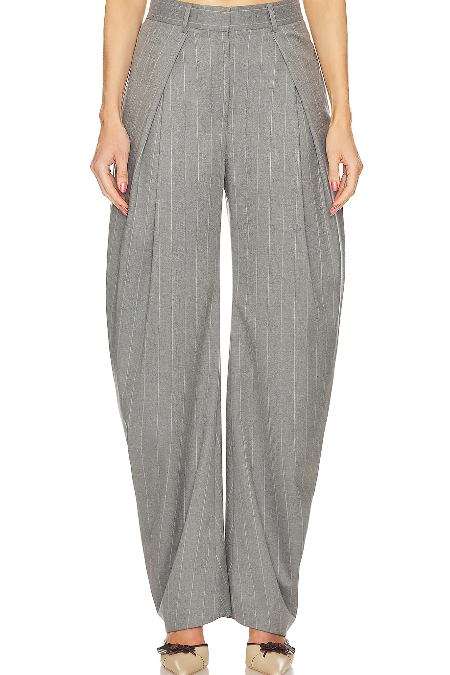 Self: 64% polyester 34% viscose 2% spandex Lining: 55% polyester 45% viscose.Made in China.Dry clean only.Zip fly with hook and bar closure.4-pocket styling.Twill suiting fabric.24" at the knee narrows to 18" at the leg opening