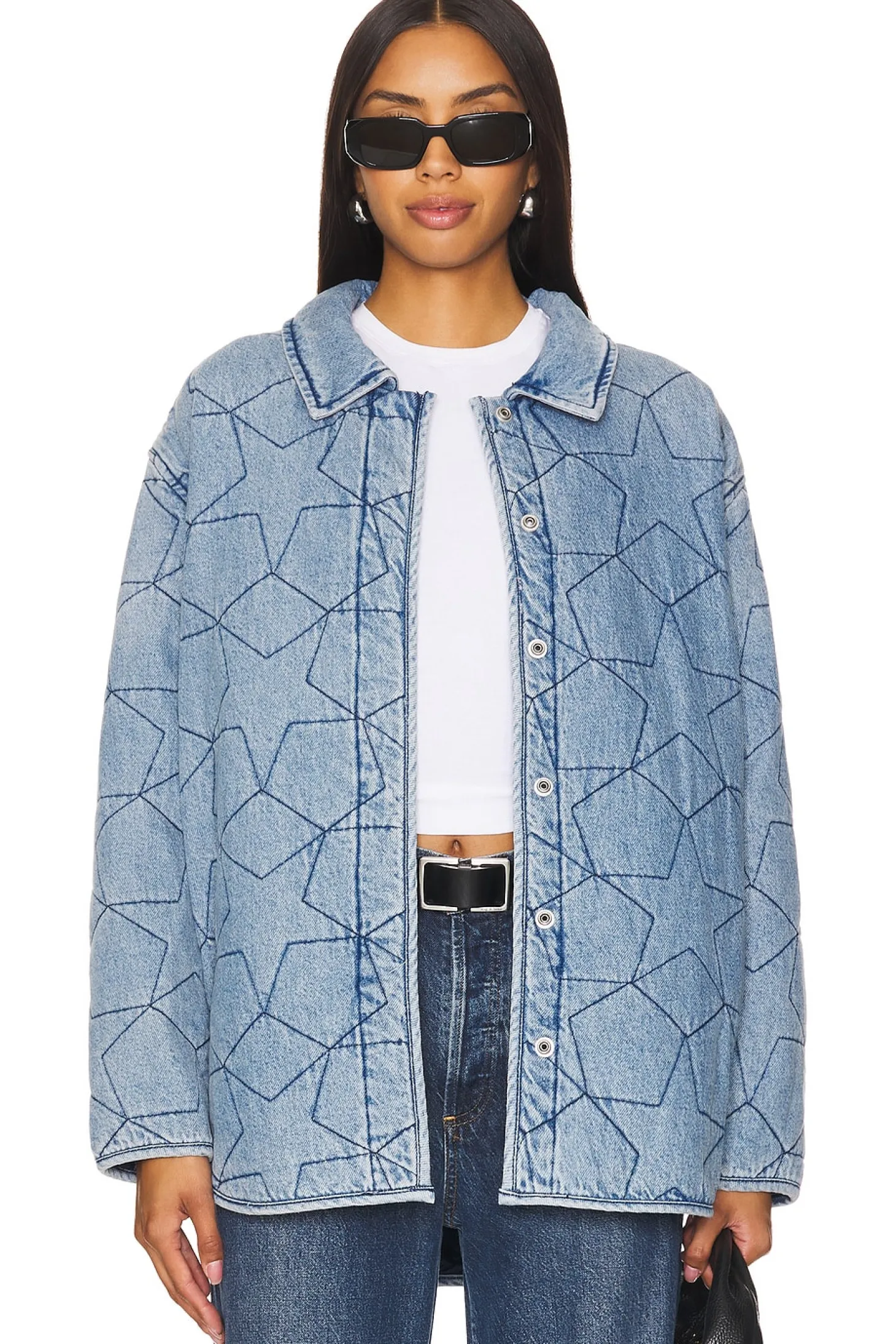 100% cotton.Made in China.Machine wash.Front hidden snap button closures