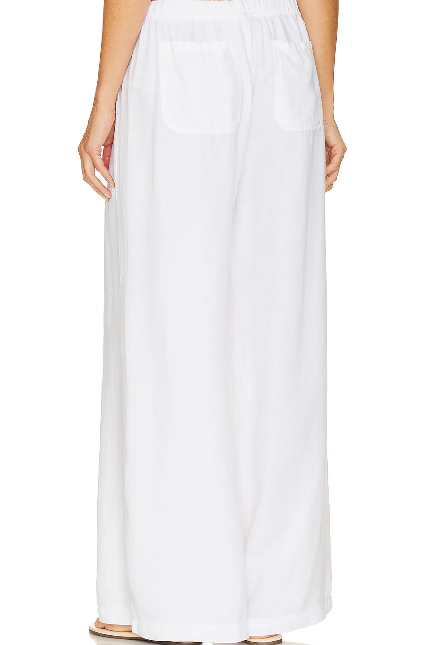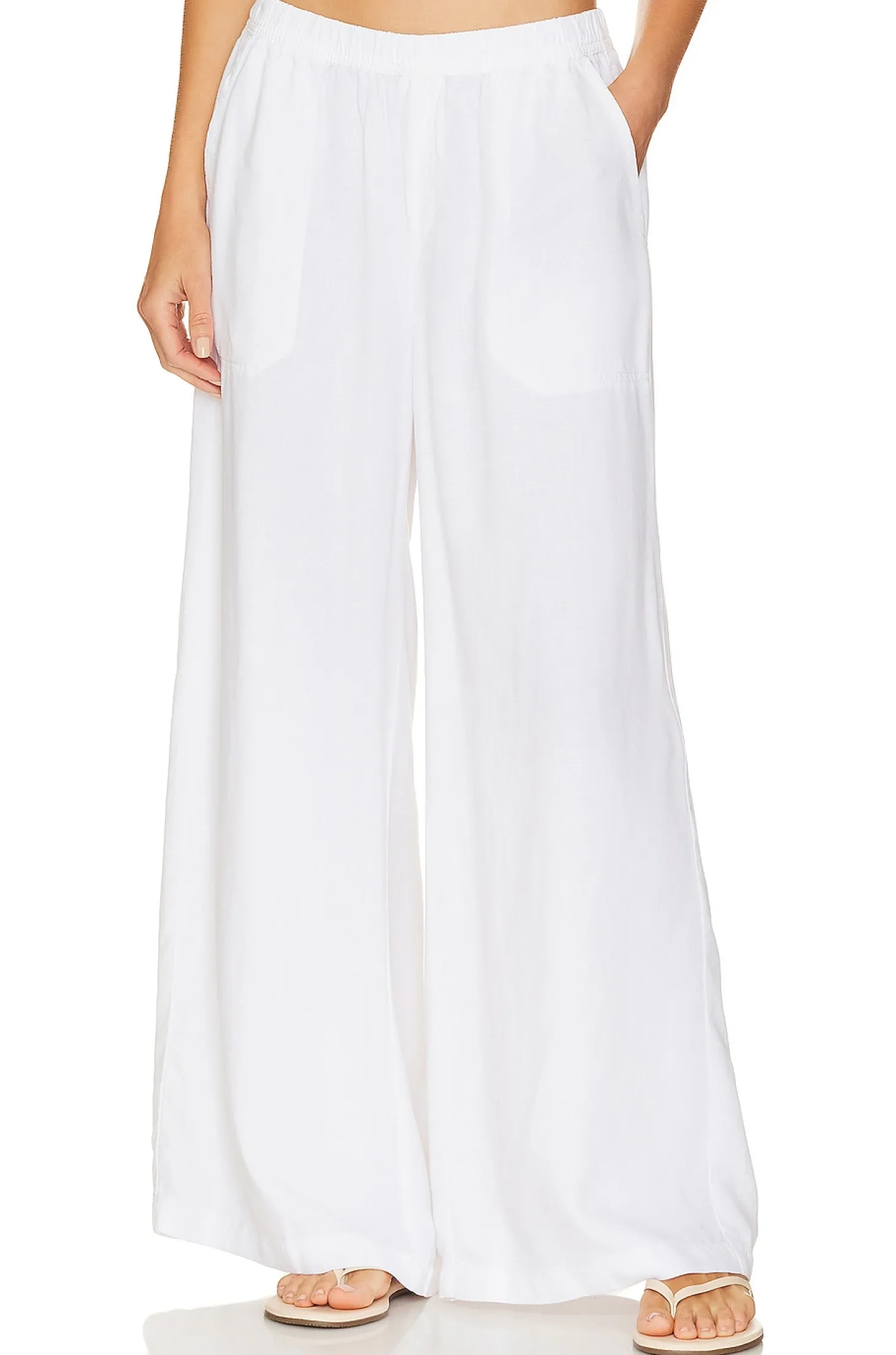 70% lyocell 30% linen.Made in China.Machine wash.Elastic waistband.4-pocket styling.Linen fabric.23" at the knee breaks to 25" at the leg opening