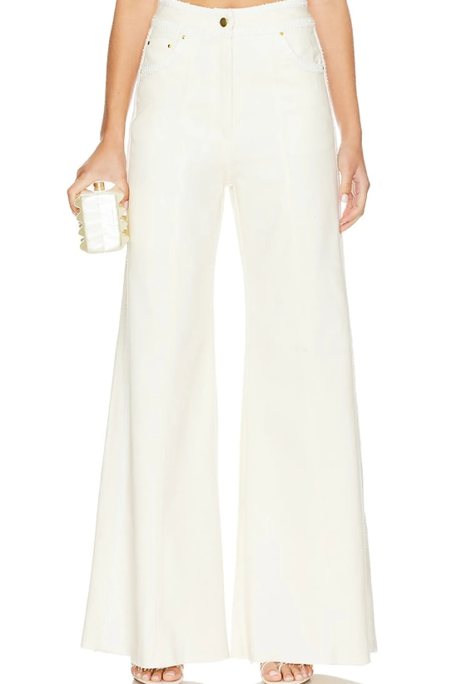 Cotton textile.Imported.Machine wash recommended.Zip fly with button closure.5-pocket styling.Frayed trimming.Item not sold as a set.24" at the knee breaks to 28" at the leg opening