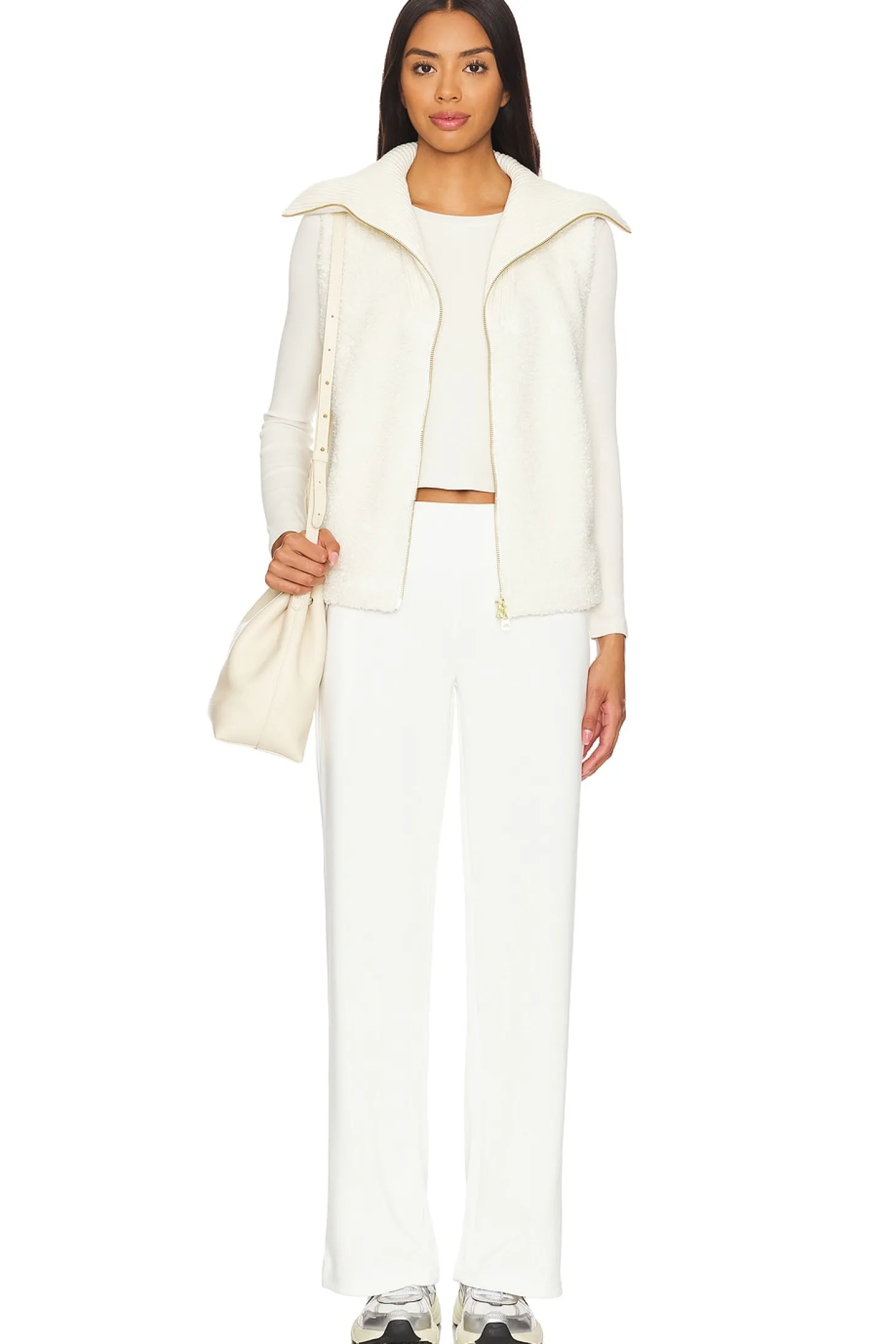 Self: 100% polyester Contrast Fabric: 100% cotton.Made in China.Machine wash.Two-way front zipper closure.Side pockets.Sherpa exterior
