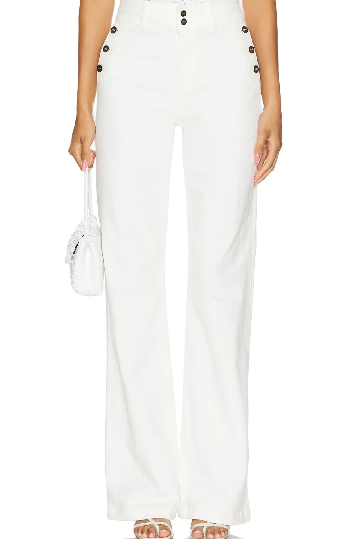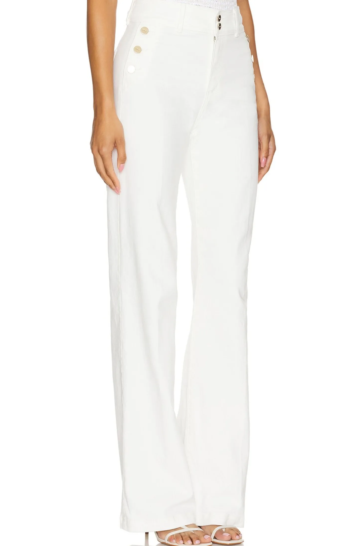 98% cotton 2% elastane.Made in Mexico.Machine wash.Zip fly with button closure.Side pockets with button closure.Back pockets.19" at the knee breaks to 20" at the leg opening