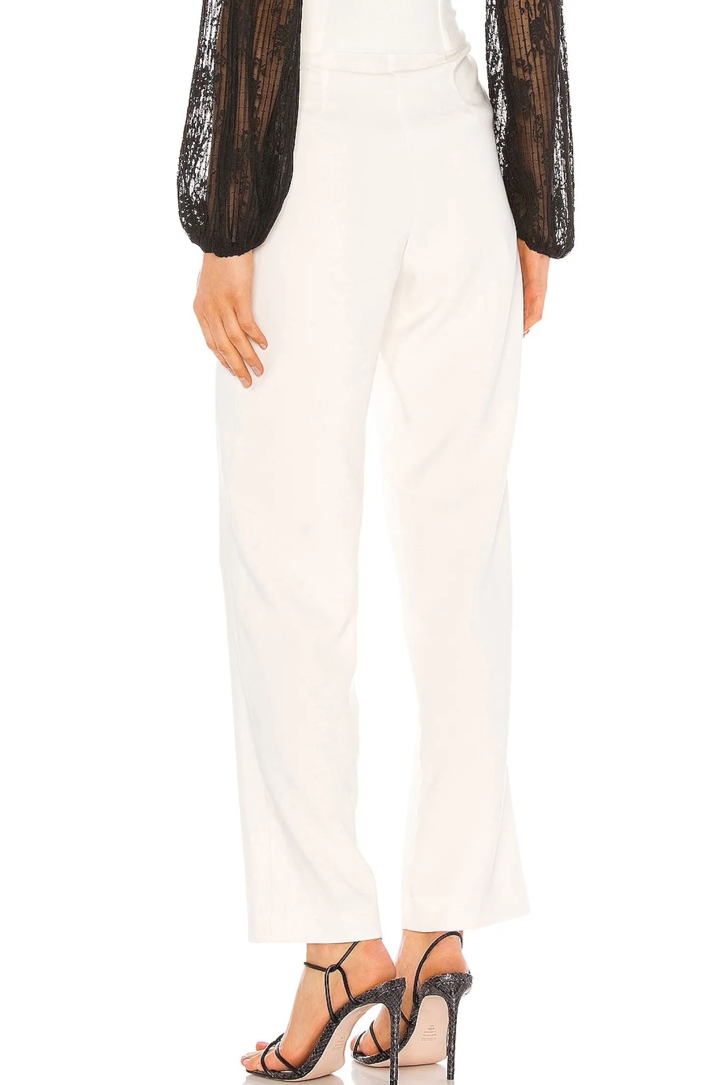 Self: 94% poly 6% elastane Lining: 95% poly 5% elastane.Hand wash cold.Hidden side zipper closure.Side slant pockets.Pleated detail.Crepe fabric.17" at the knee narrows to 15" at the leg opening.Imported