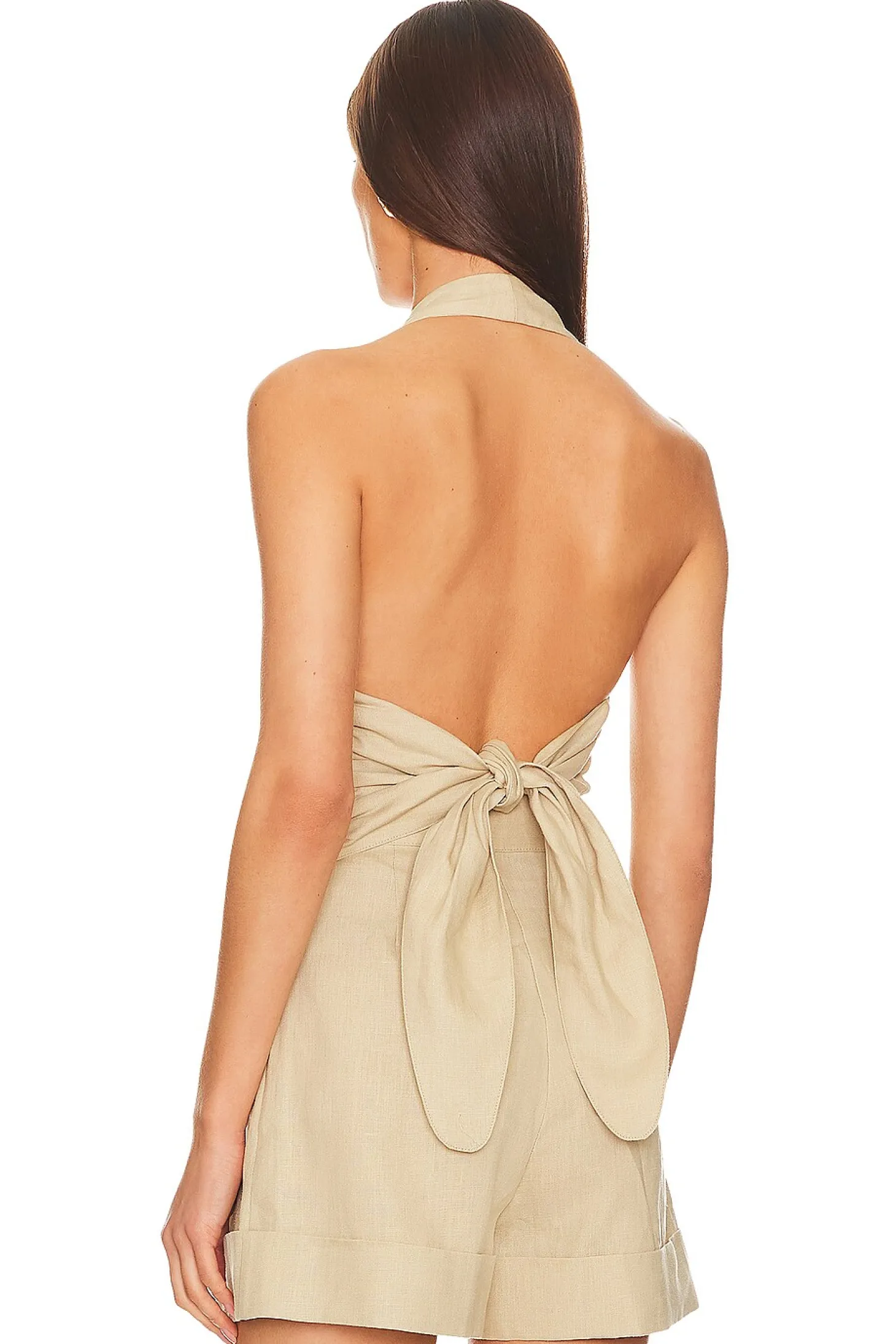 100% linen.Made in Turkey.Machine wash.Back tie closure.Front button detail with silver-tone sculpted buttons.Linen fabric.Item not sold as set
