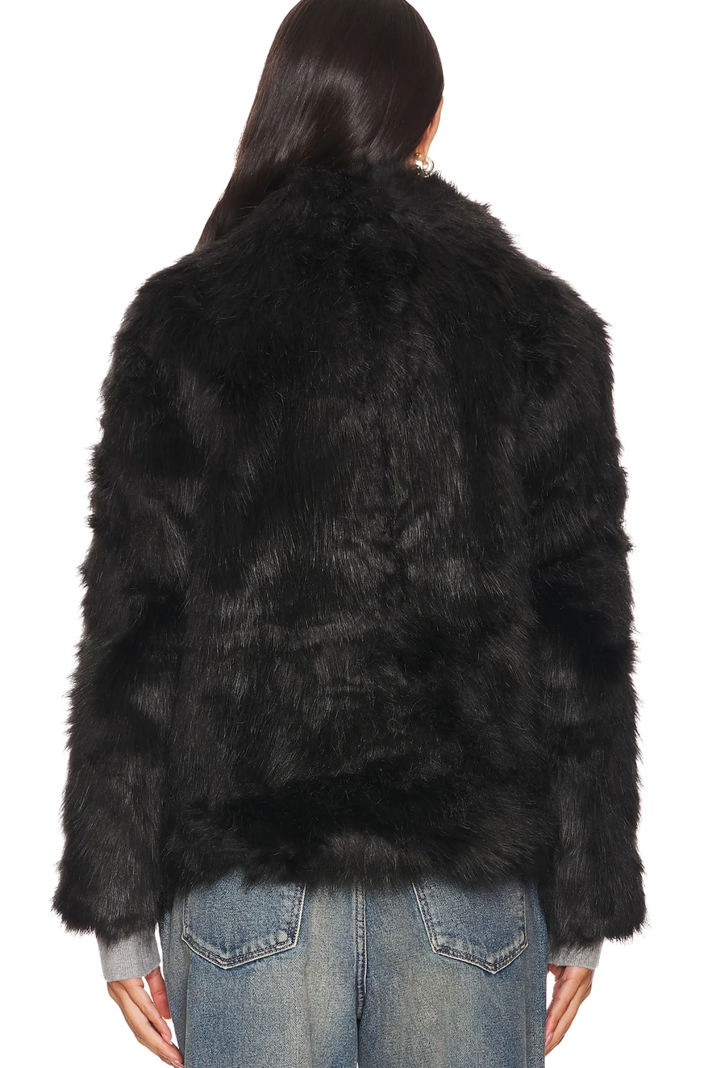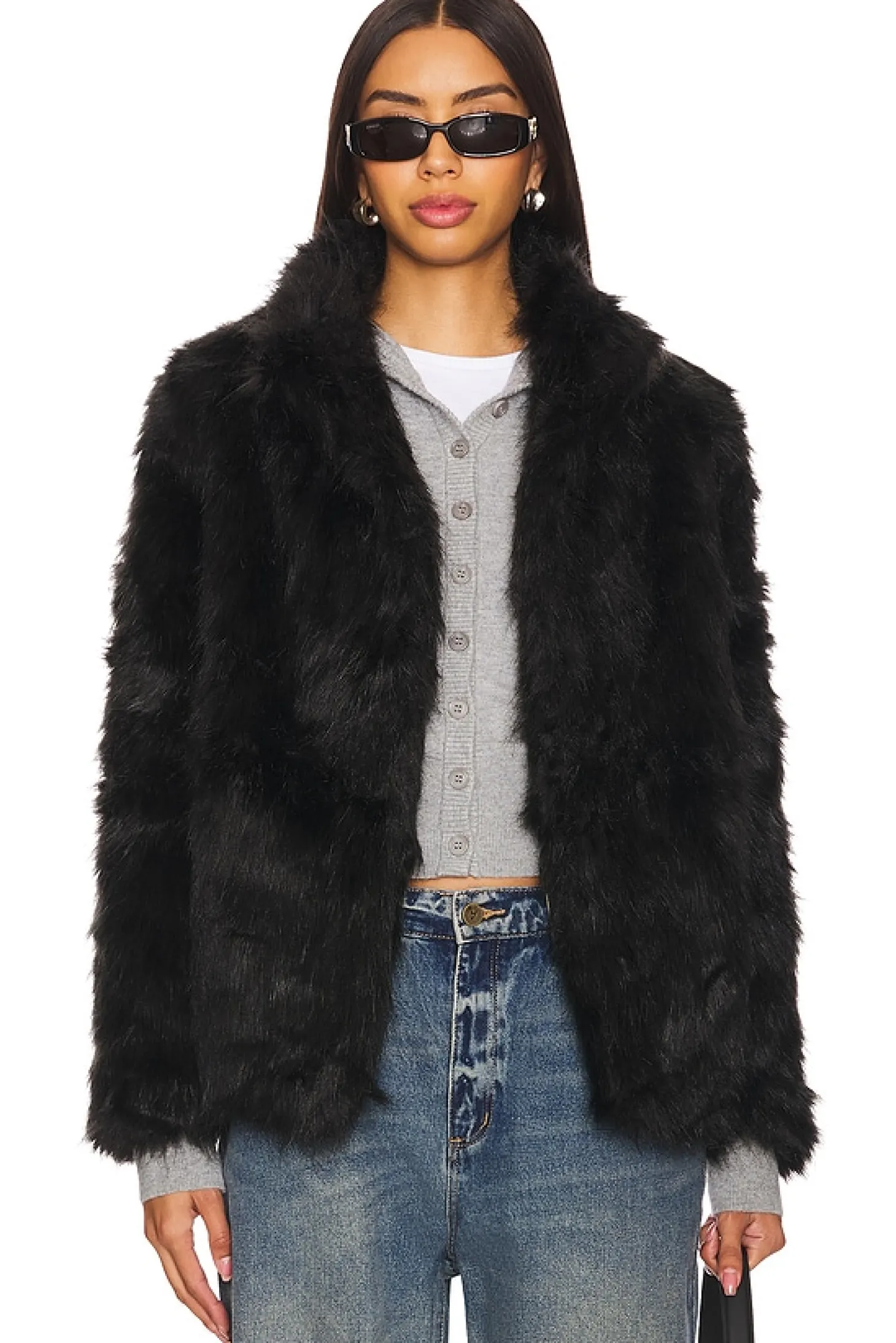 100% polyester.Made in China.Hand wash.Front slit pockets.Faux fur fabric