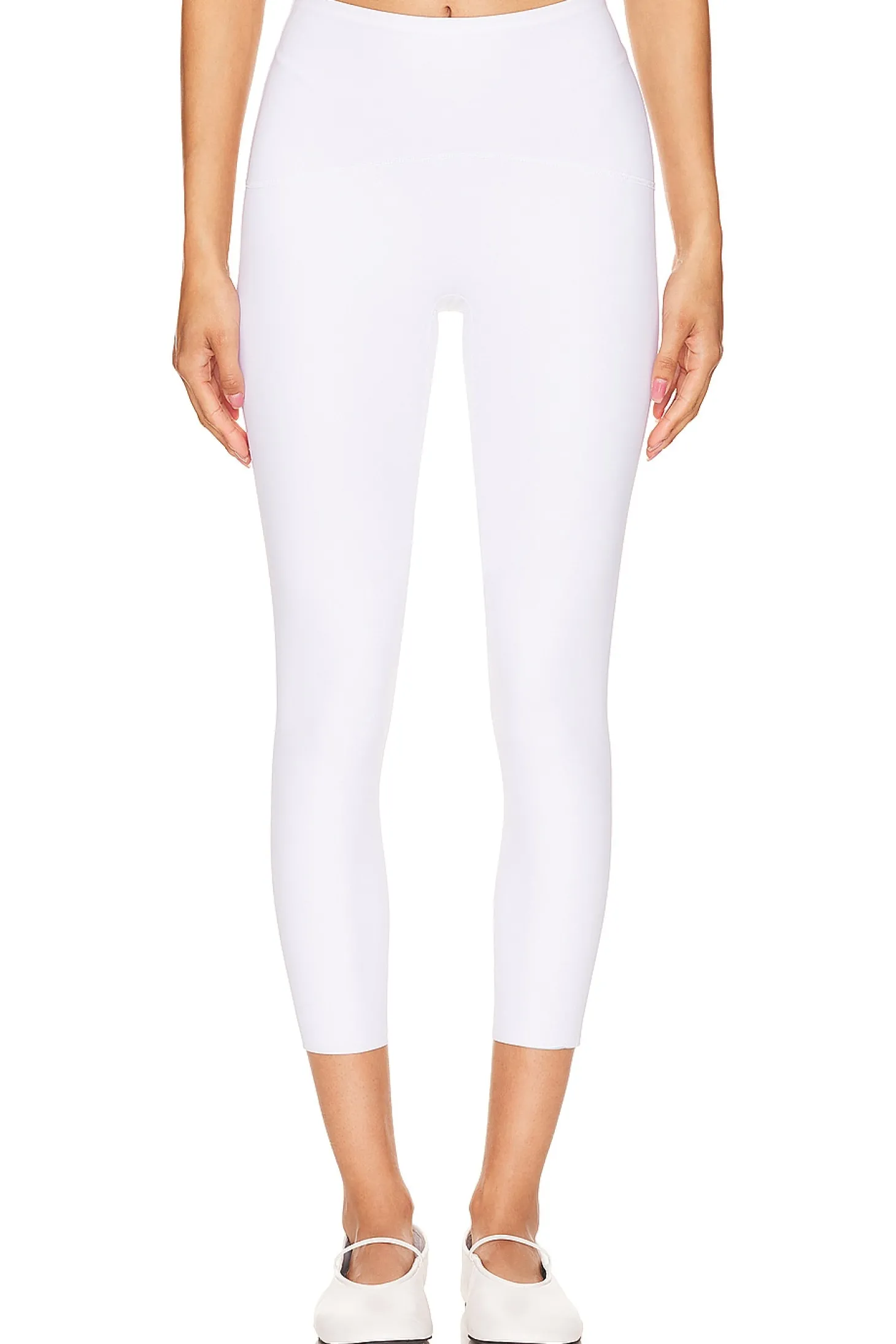 Self 1:68% nylon 32% elastane Self 2: 80% 20% elastane.Made in Indonesia.Machine wash.Pull-on styling with wide stretch waistband.Thick jersey fabric.11" at the knee narrows to 8" at the leg opening
