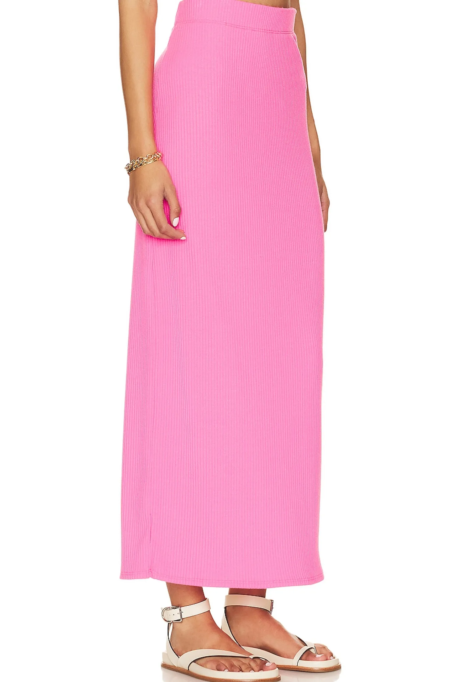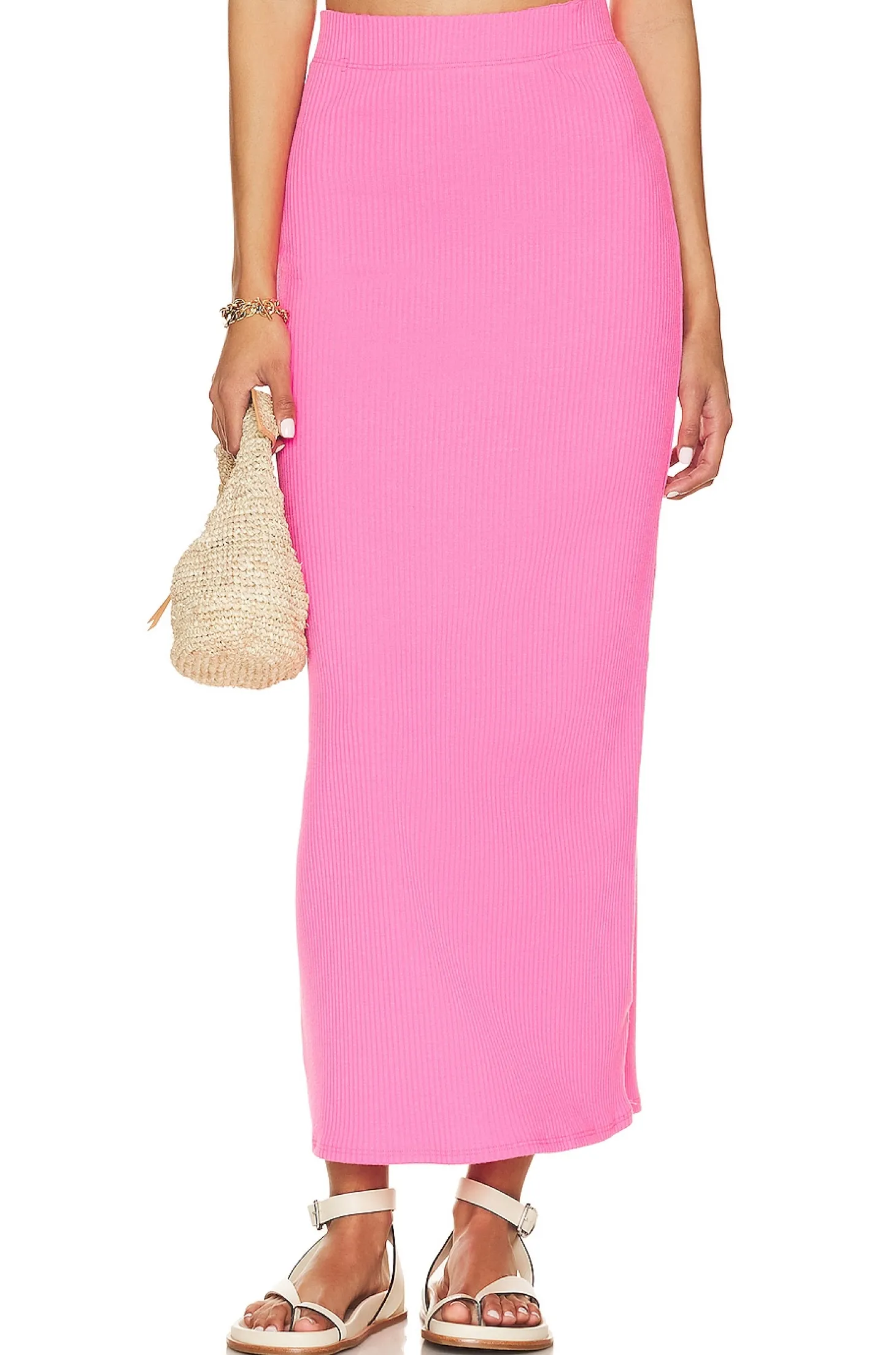 74% polyester 22% rayon 4% spandex.Made in USA.Dry clean only.Unlined.Pull-on styling with elastic waistband.Ribbed stretch fabric.Item not sold as a set.Skirt measure approx 38" in length