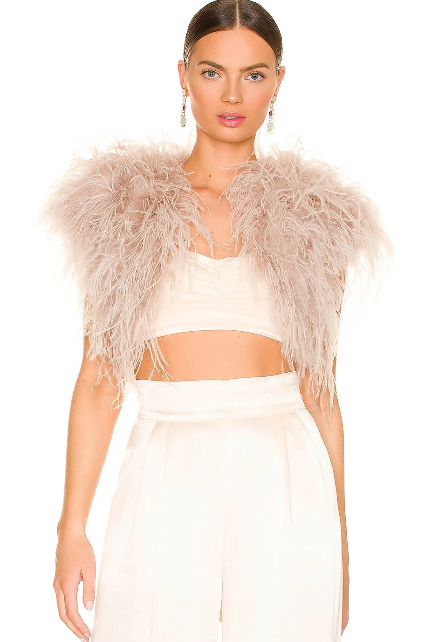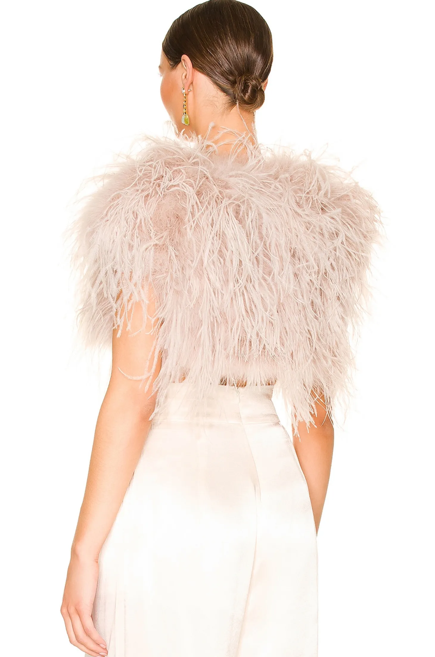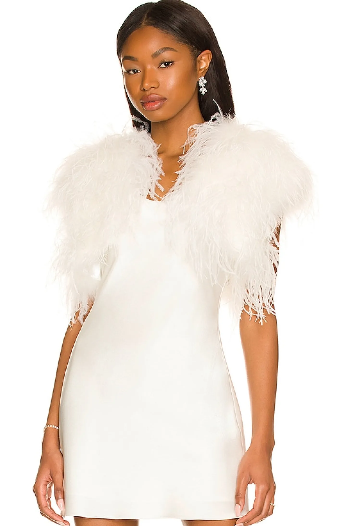 100% ostrich feather.Made in China.Dry clean only.Open front