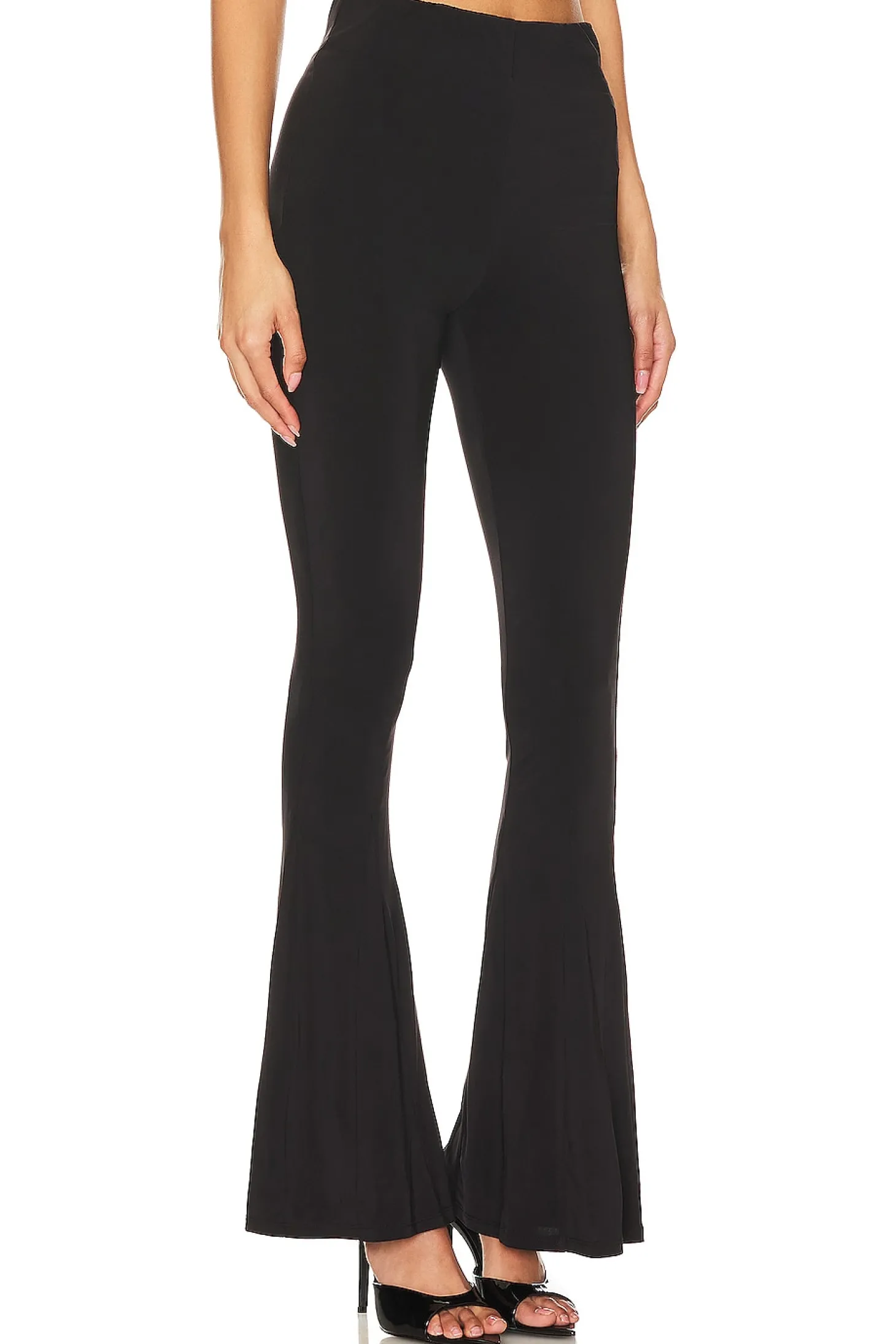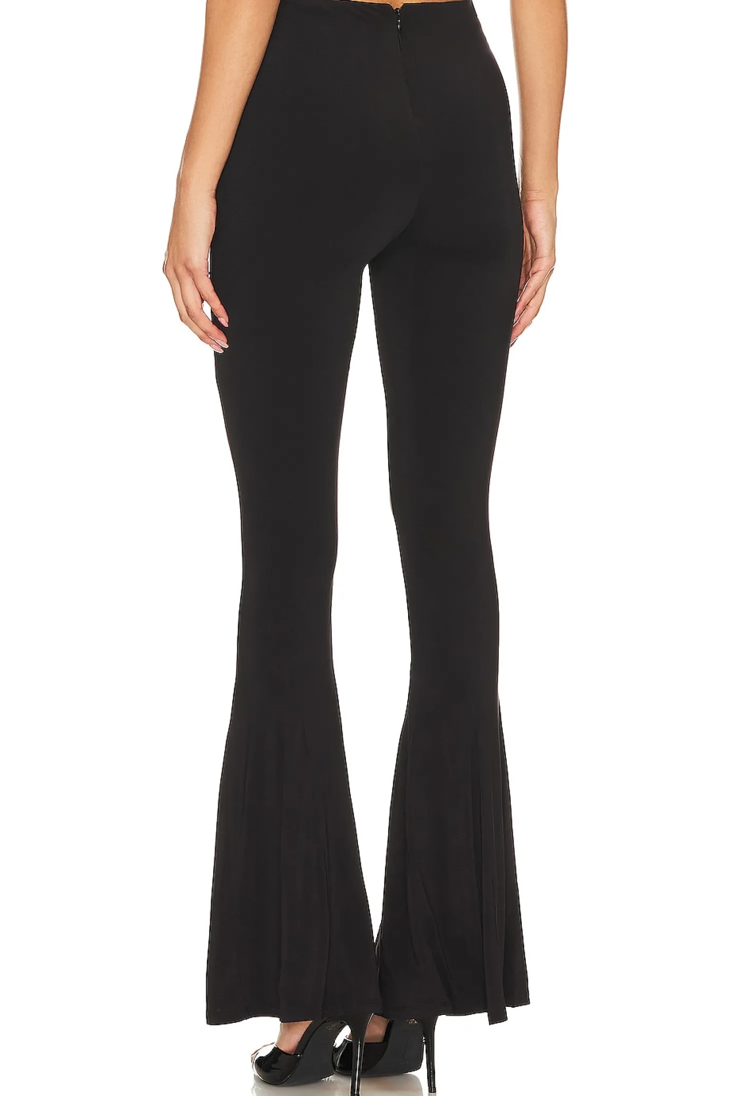 Introducing the Lovers and Friends Bex Pant in Black – these sleek and tailored trousers are a true staple from season to season. Whether paired with a slim bodysuit or elevated with a button-down blouse, this style promises to turn heads with every wear..94% polyester 6% elastane.Made in China.Dry clean only.Hidden back zipper closure.Elastic waistband.Slinky jersey fabric.12" at the knee breaks to 20" at the leg opening