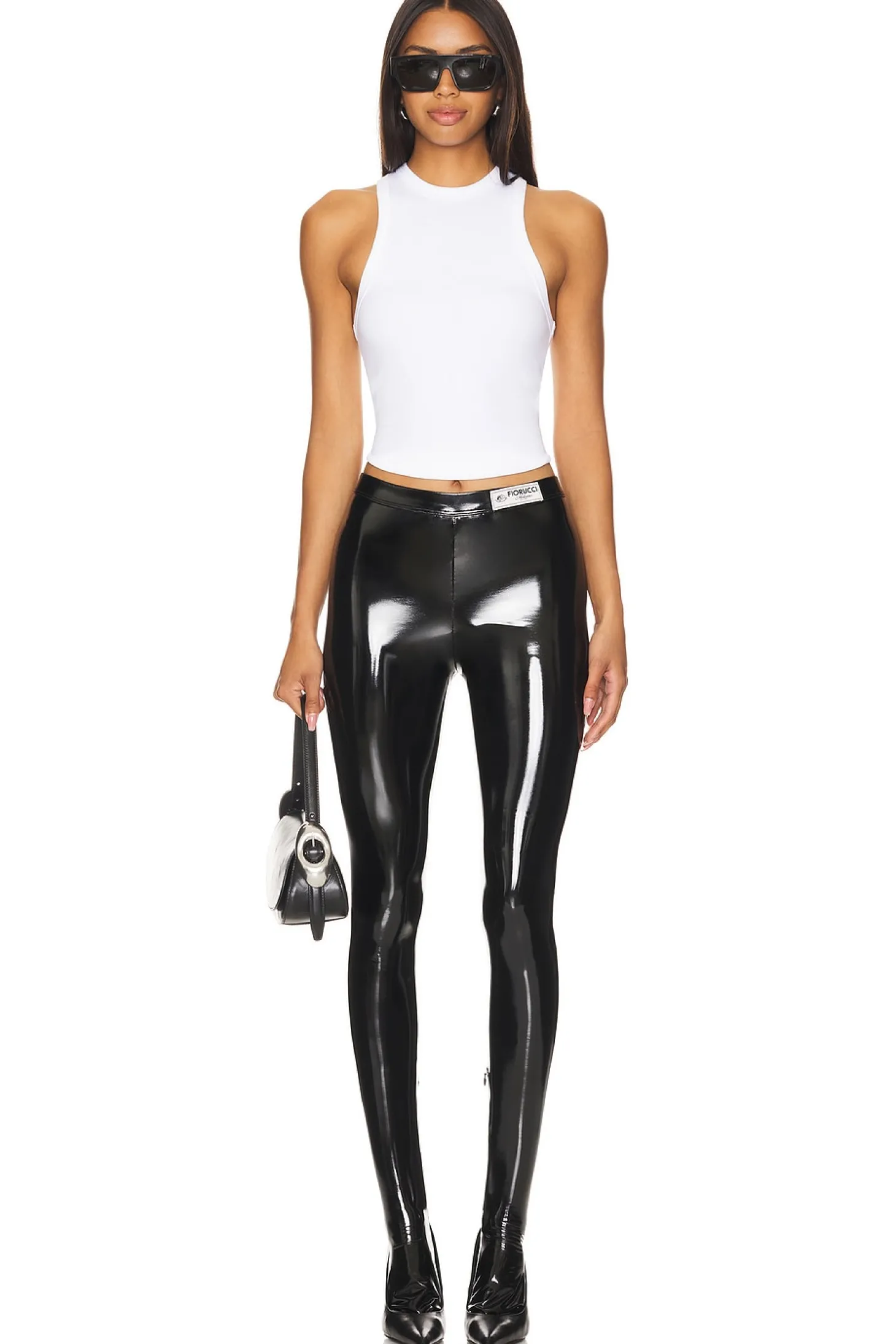 55% polyester 35% polyurethane 10% elastane.Made in Italy.Hand wash.Pull-on styling with elastic waistband.Vinyl fabric