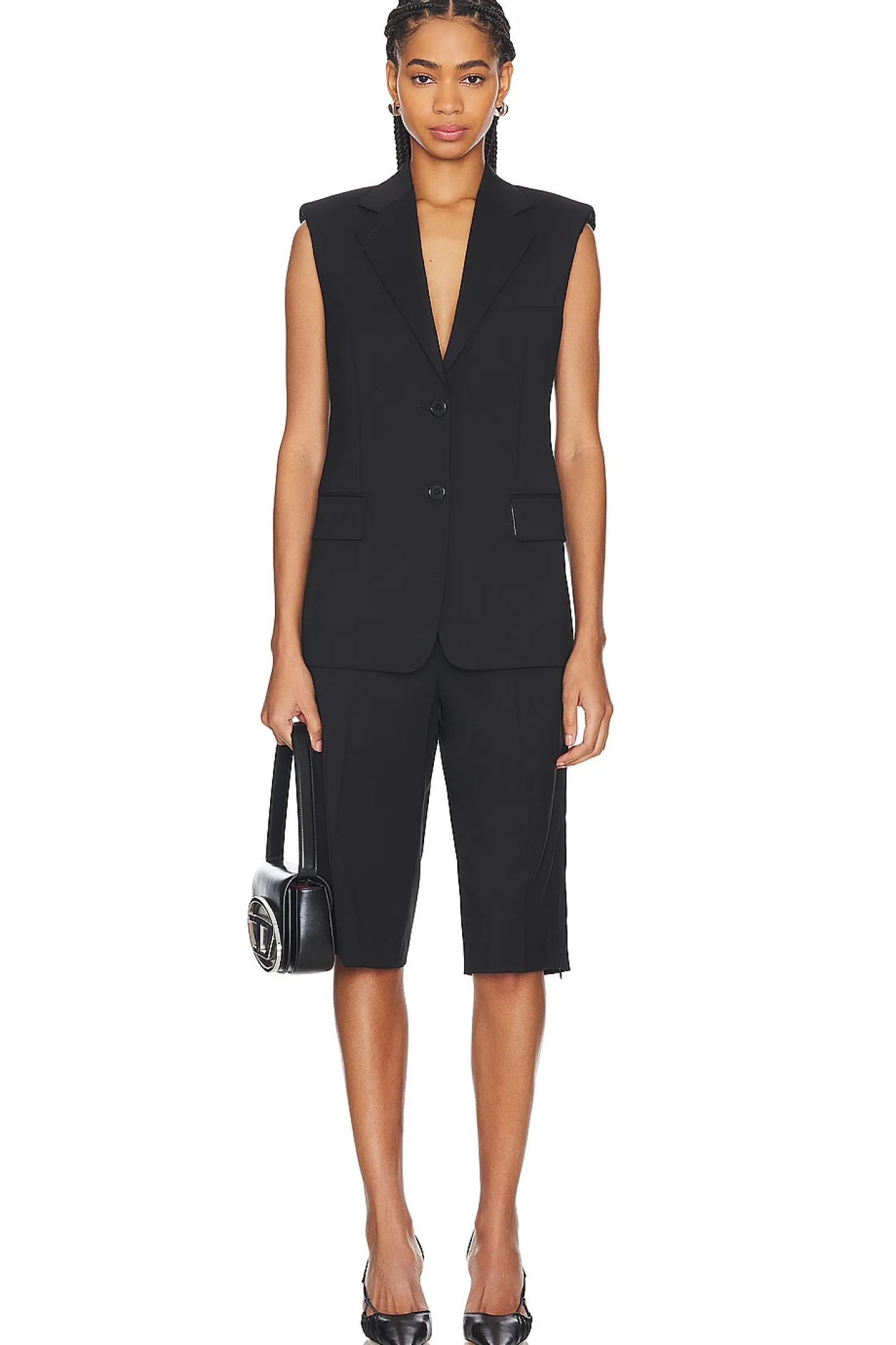 Self 1: 100% wool Self 2: 50% linen 35% wool 15% viscose Lining: 100% viscose.Made in China.Dry clean only.Front button closure.Side flap pockets with collar.Shoulder padding