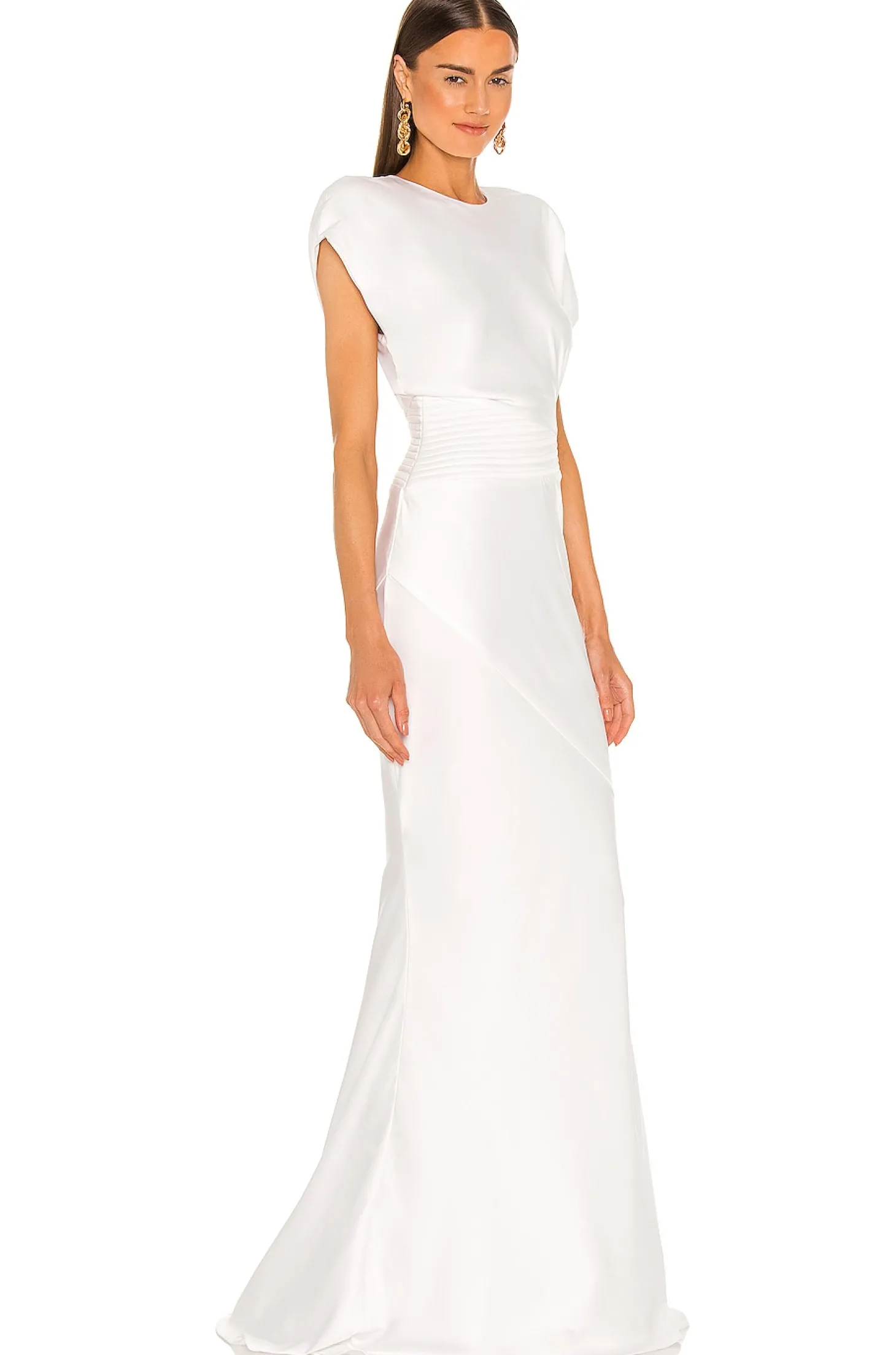 90% poly 10% spandex.Made in Australia.Hand wash.Fully lined.Hidden back zipper closure with loop button fastening.Padded waist detail