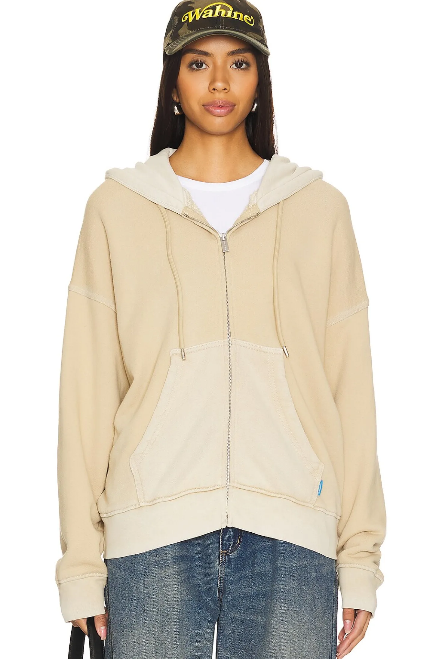 100% cotton.Made USA.Machine wash.Front zipper closure.Dual slant pocket styling.Drawstring hood details