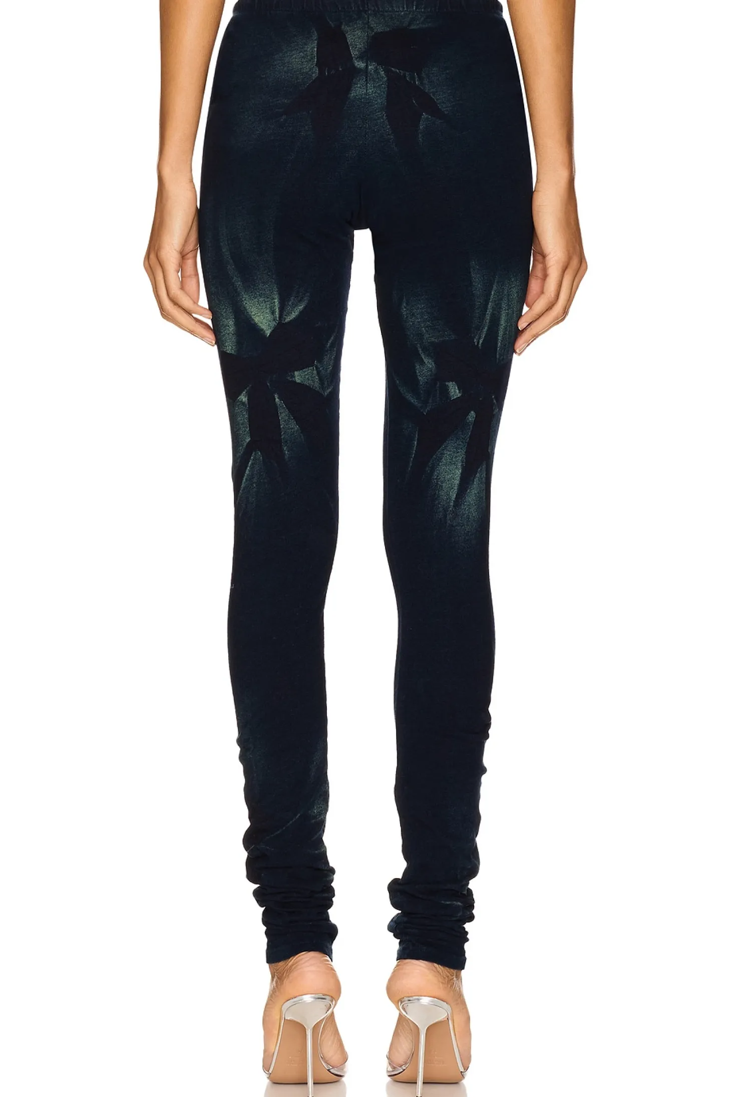67% lyocell 33% cotton.Made in Ukraine.Machine wash.Pull-on styling.Hip cut-outs.Midweight jersey fabric with intentional fading throughout Item not sold as a set.12" at the knee narrows to 10 " at the leg opening