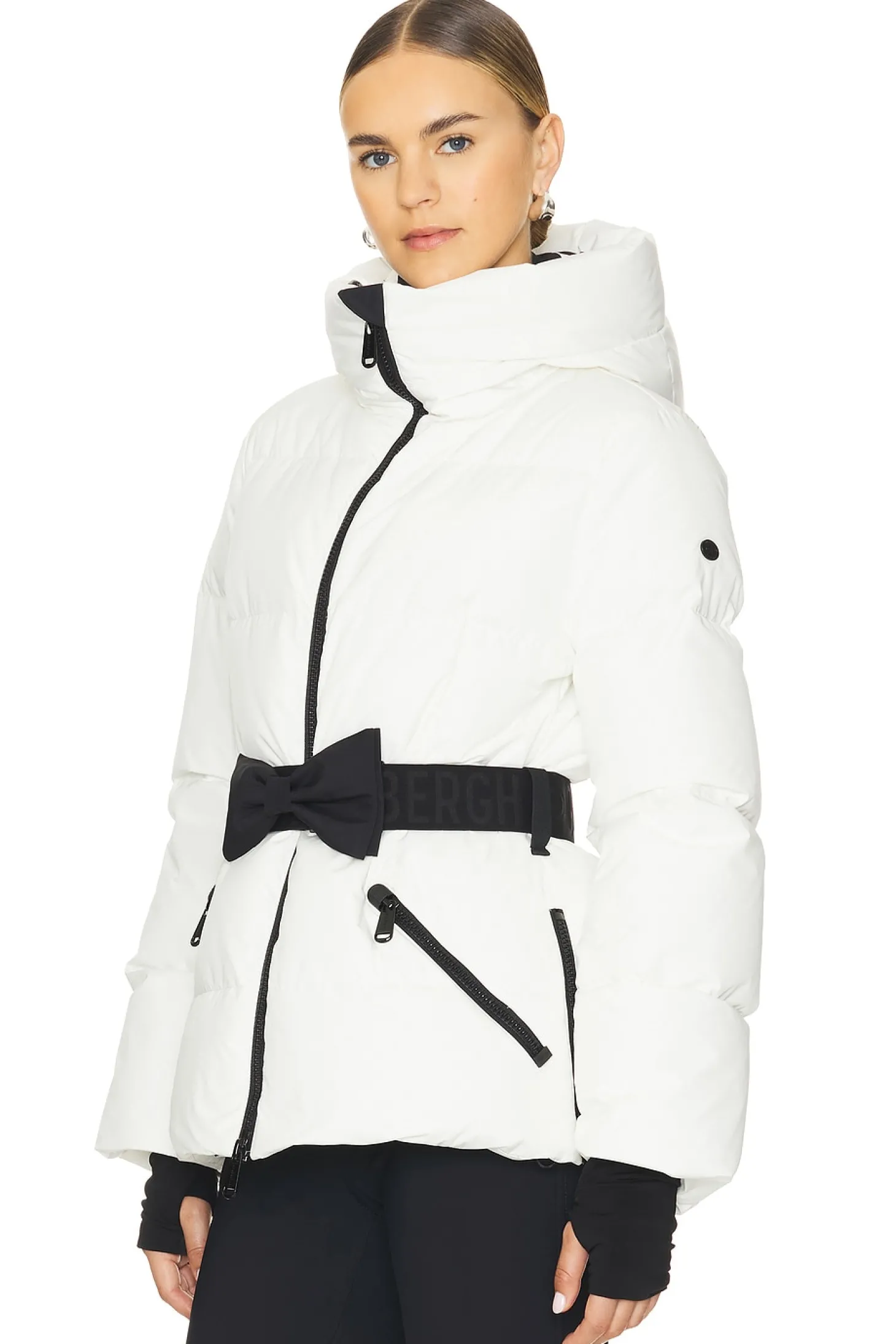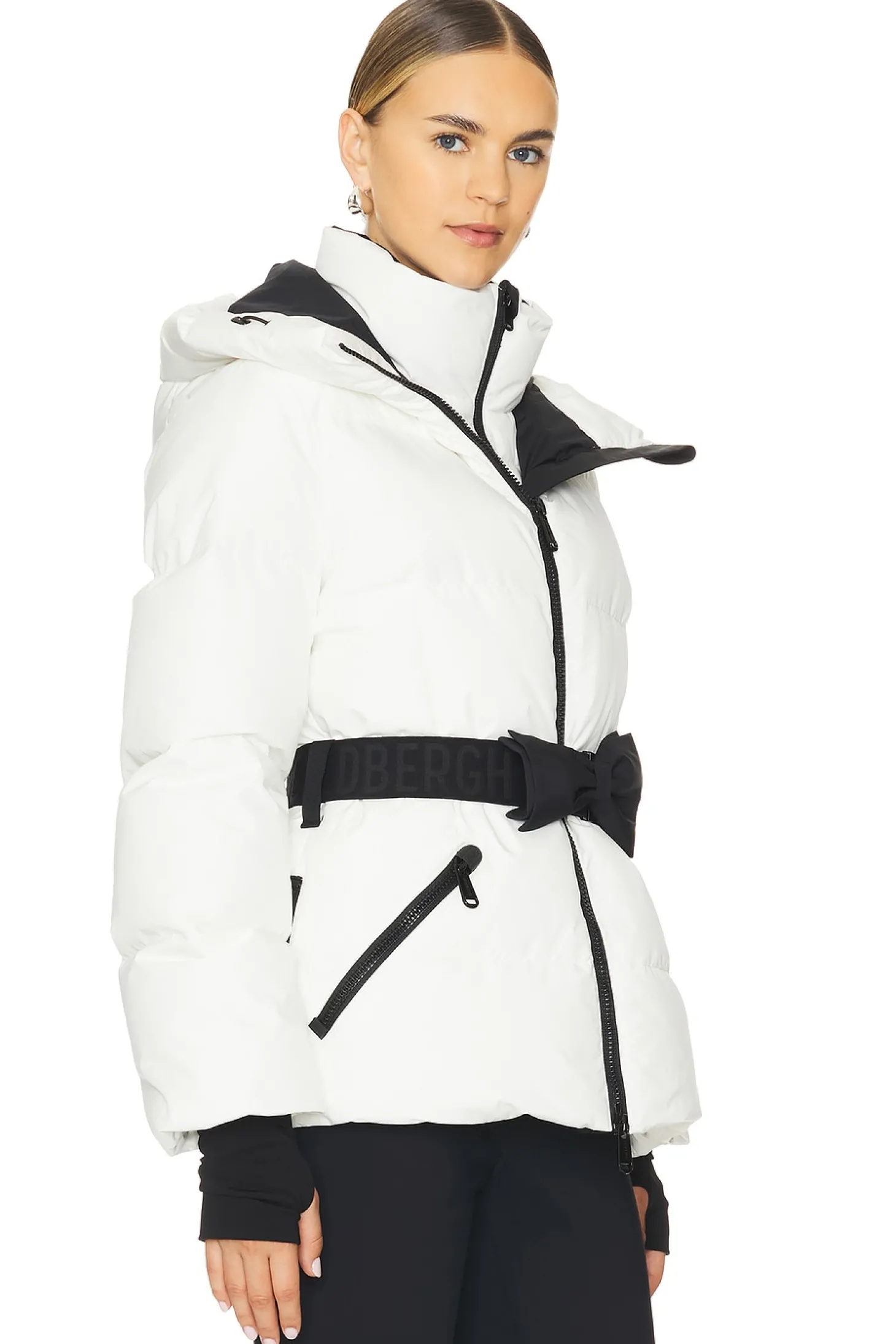 Polyester blend.Imported.Dry clean recommended.Two-layer front zipper closure with snap button placket.Pull-cord hood and hem.Interior breast pockets with zipper closure.Includes adjustable belt with bow accent