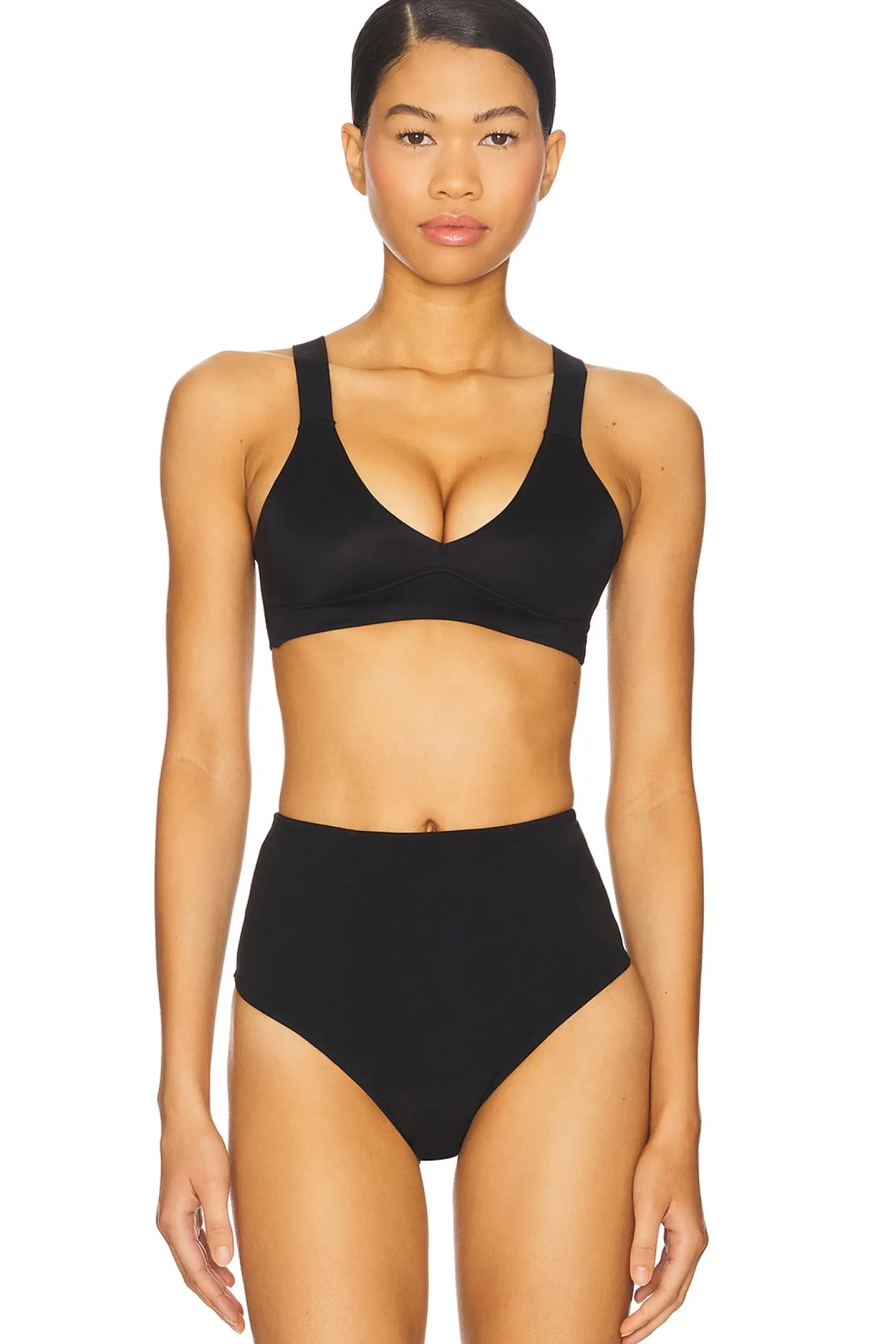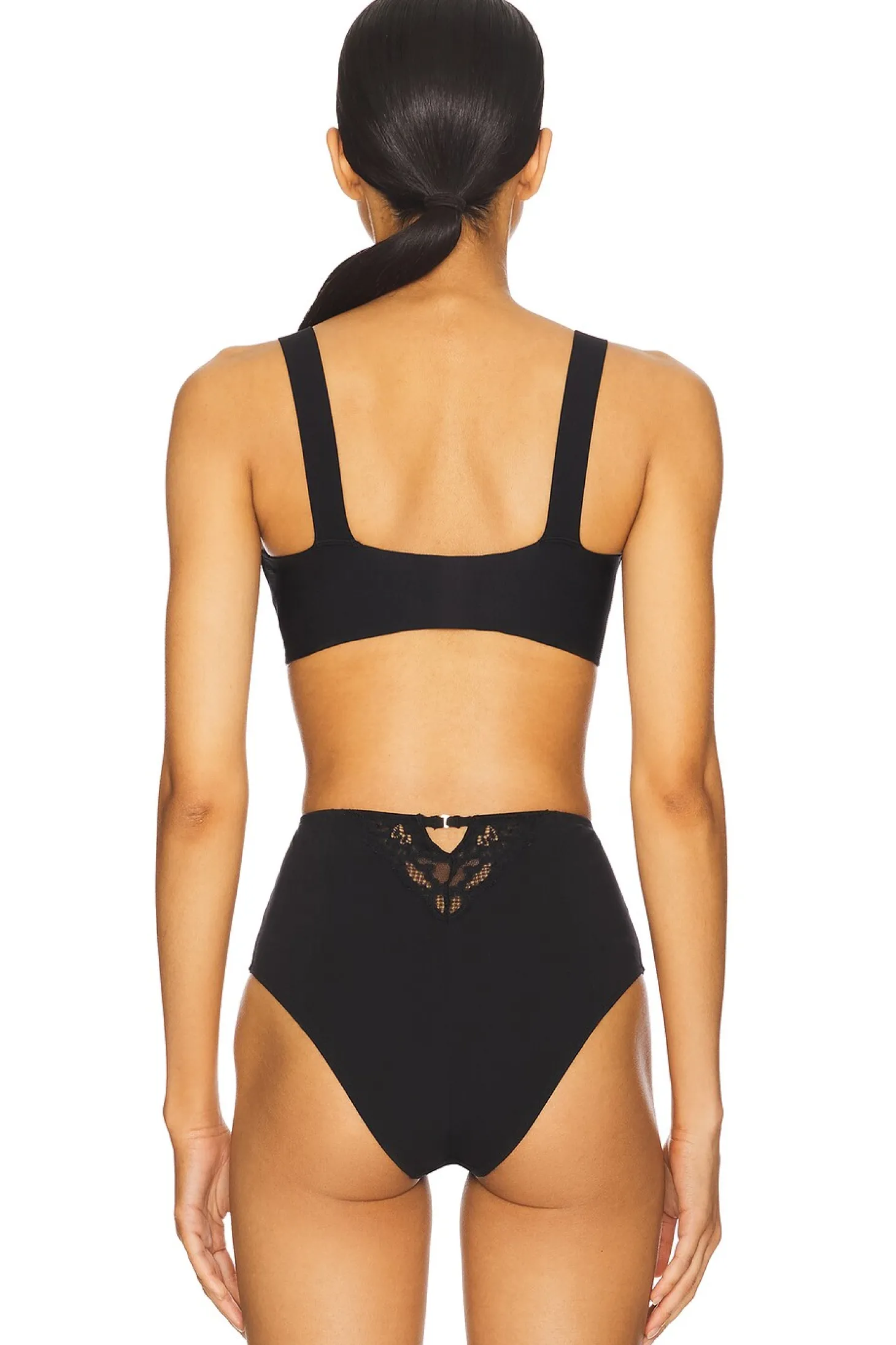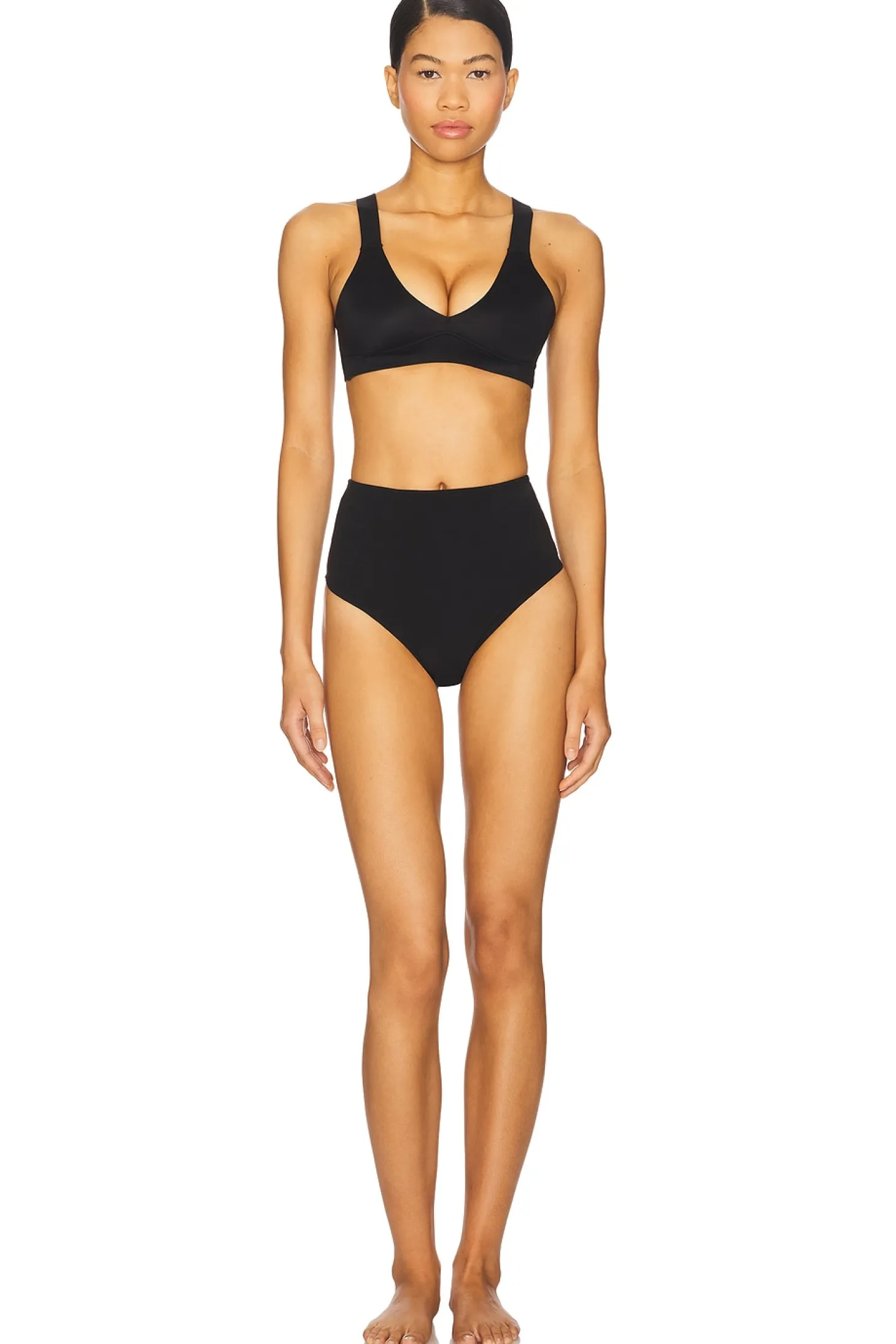Self: 72% nylon 28% elastane Straps: 80% nylon 20% elastane.Hand wash cold.Pull-on styling.Unpadded.Elasticized shoulder straps.Imported