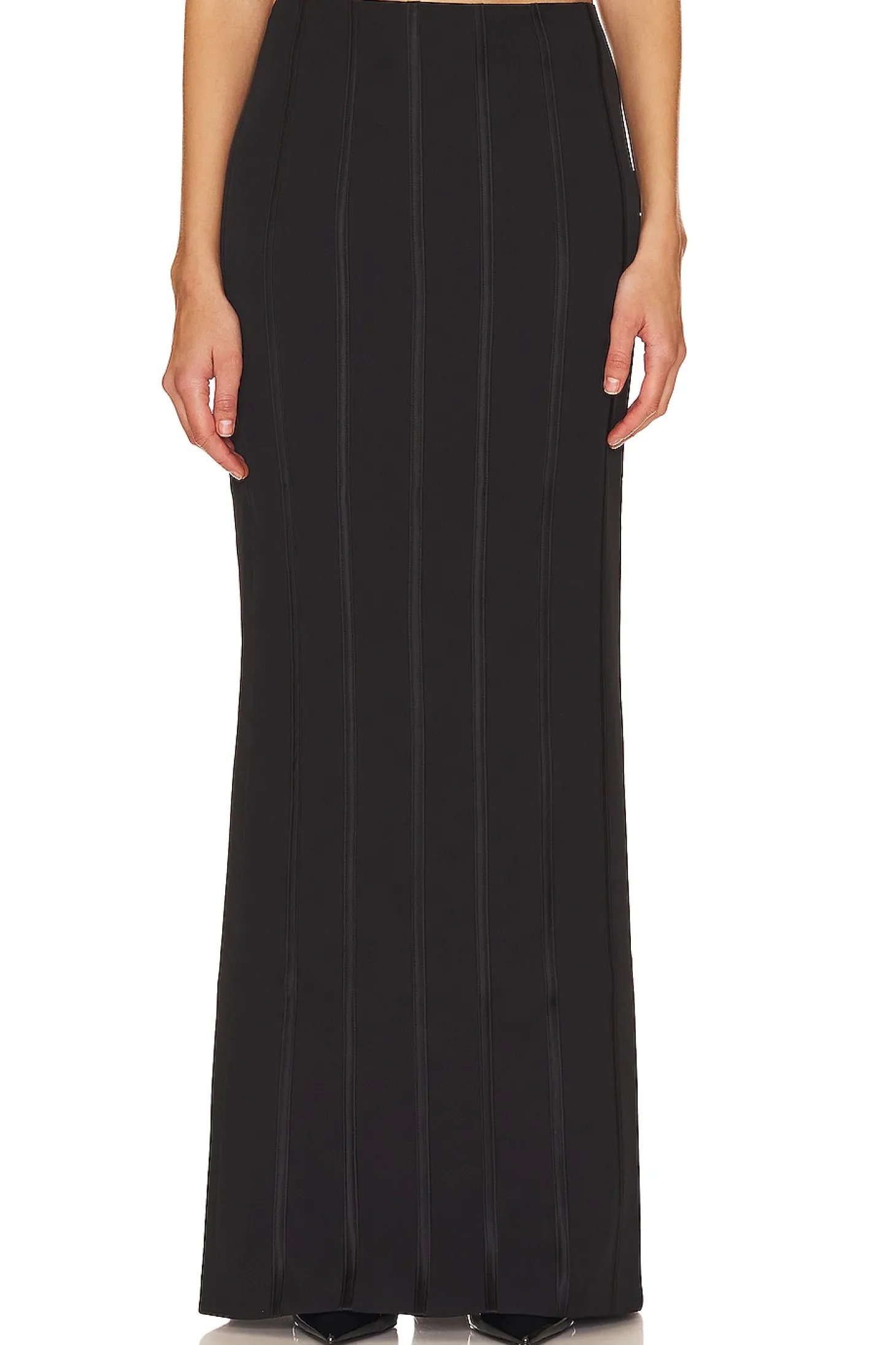 Self: 100% polyester Lining: 95% viscose 5% spandex.Made in China.Dry clean only.Double lined.Hidden side zipper closure.Back vent.Midweight suiting fabric Item not sold as a set.Skirt measures approx 43" in length