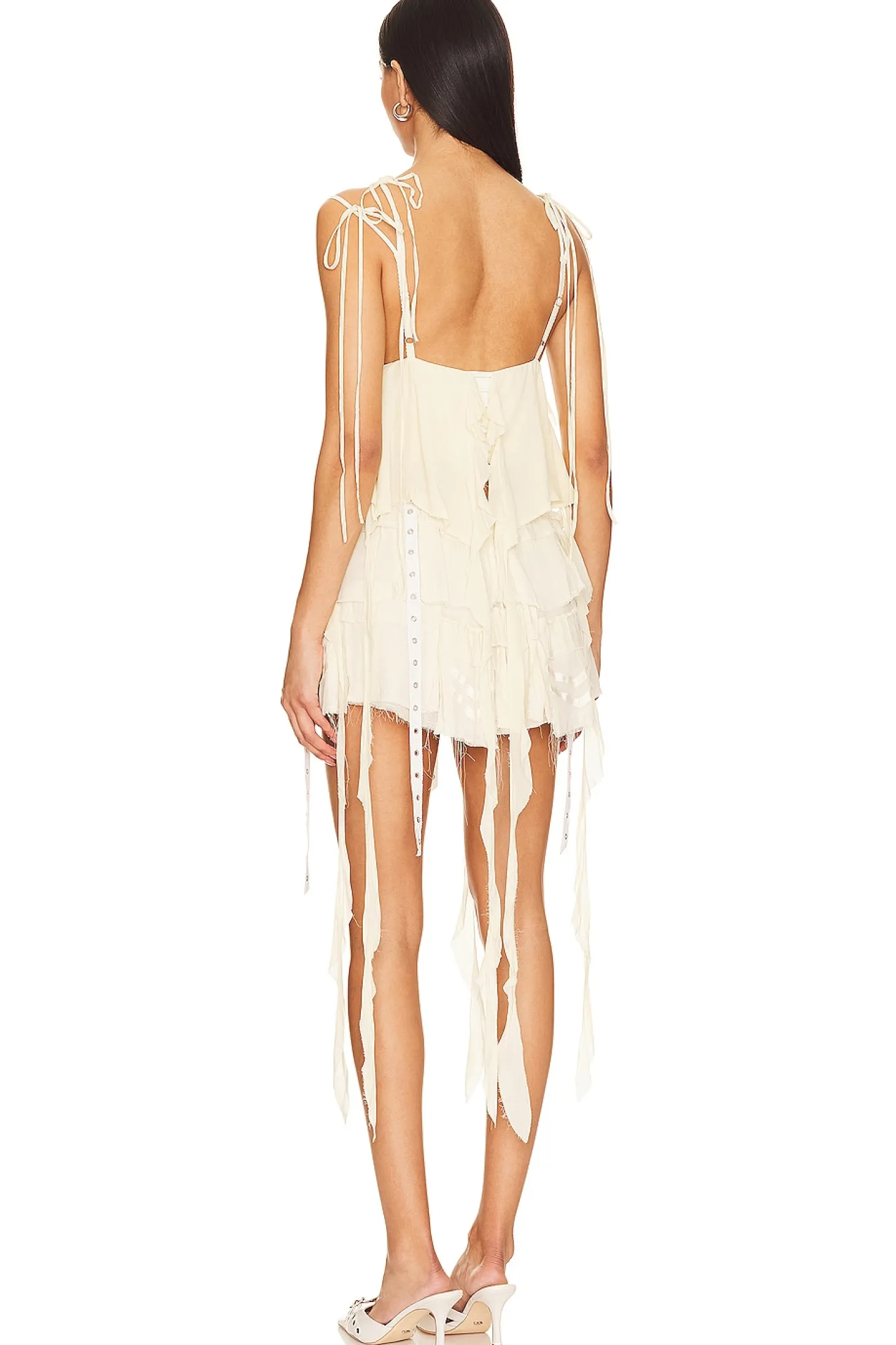 Garment: 100% polyester Lining: 86% polyester 14% elastane .Made in Italy.Wash separately on reverse.Self tie shoulder straps.Breast flap pockets with loop button closure.Lightweight georgette fabric with fabric overlays.Item not sold as a set