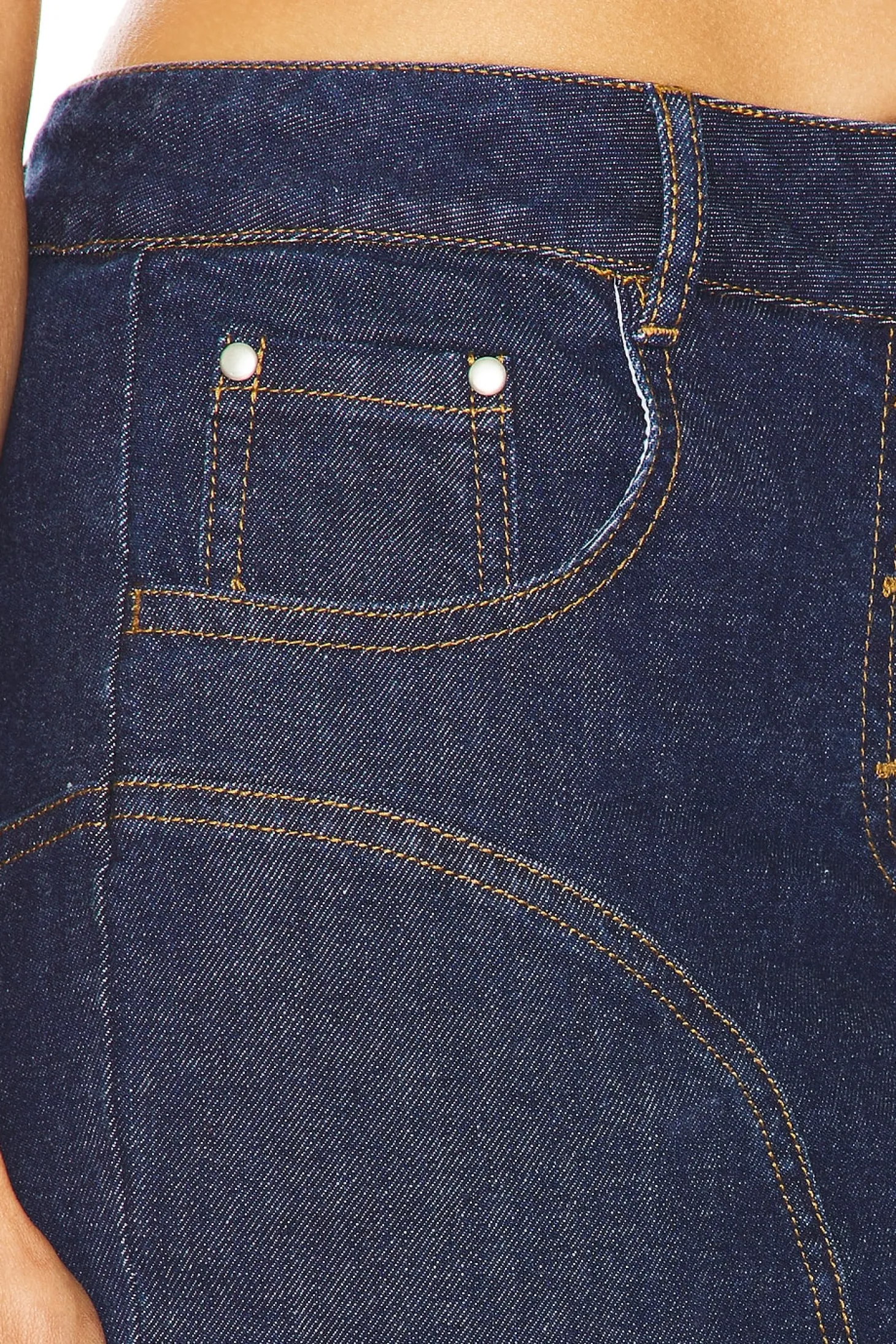 Self: 99% cotton 1% elastane Pocket Lining: 65% polyester 35% cotton.Made in China.Machine wash.Unlined.Button fly closure.5-pocket design.Item not sold as a set.Skirt measures approx 13" in length
