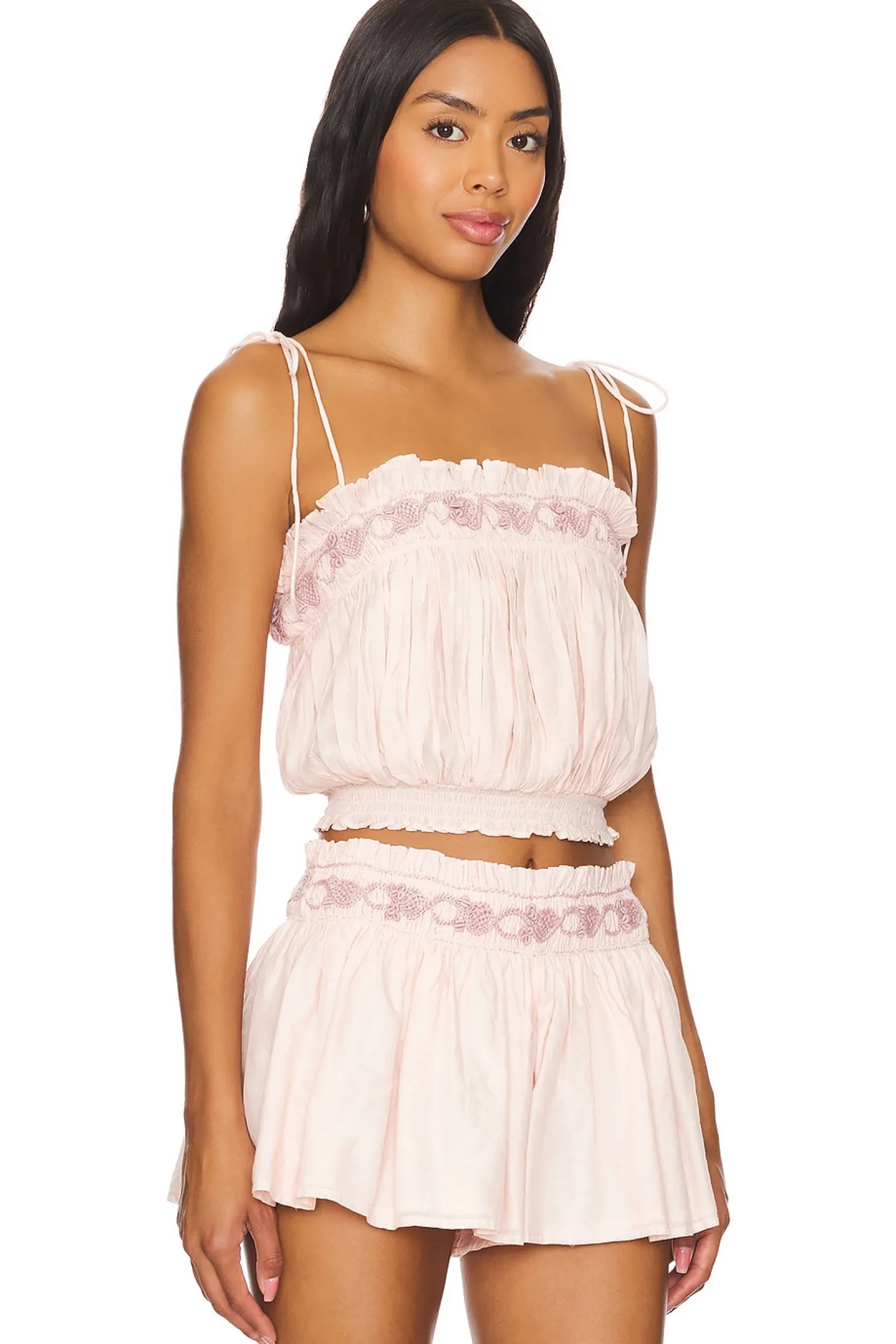 100% cotton.Made in India.Hand wash.Pull-on styling with elastic waistband.Self-tie shoulder straps.Ruffled fabric detail.Lightweight poplin fabric with embroidered neckline.Item not sold as set