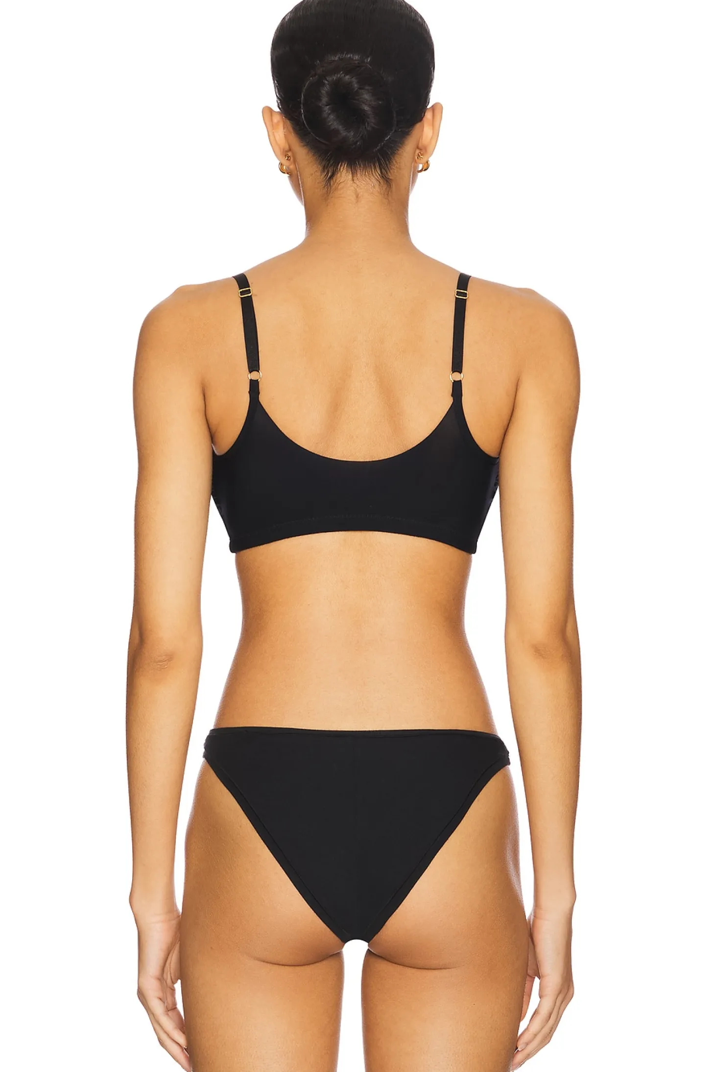 79% micro modal 21% spandex.Made in U.S.A.Hand wash cold.Jersey knit fabric.Adjustable shoulder straps.Stretch fit