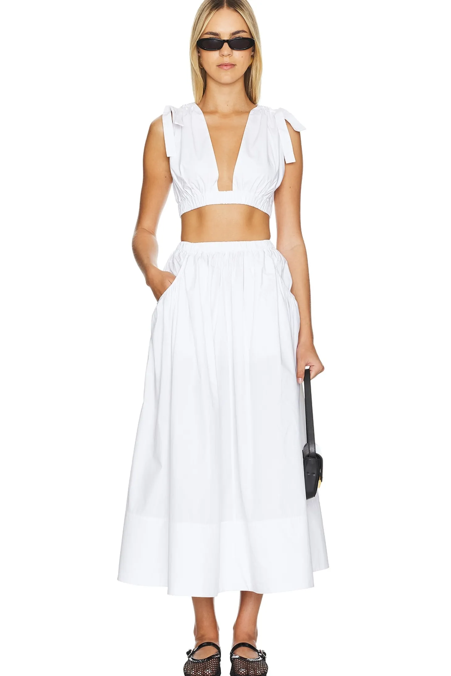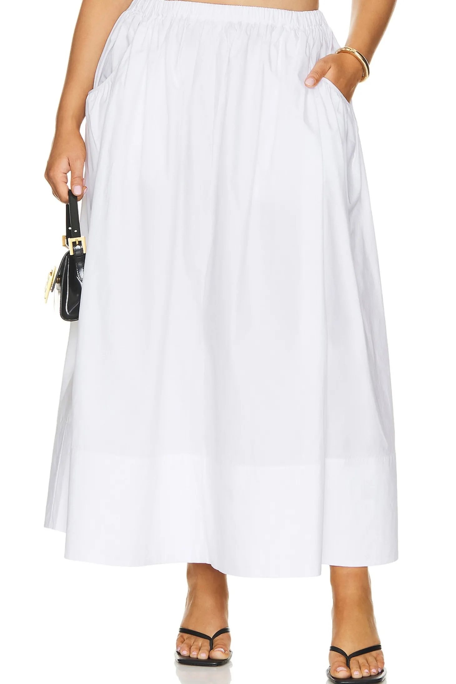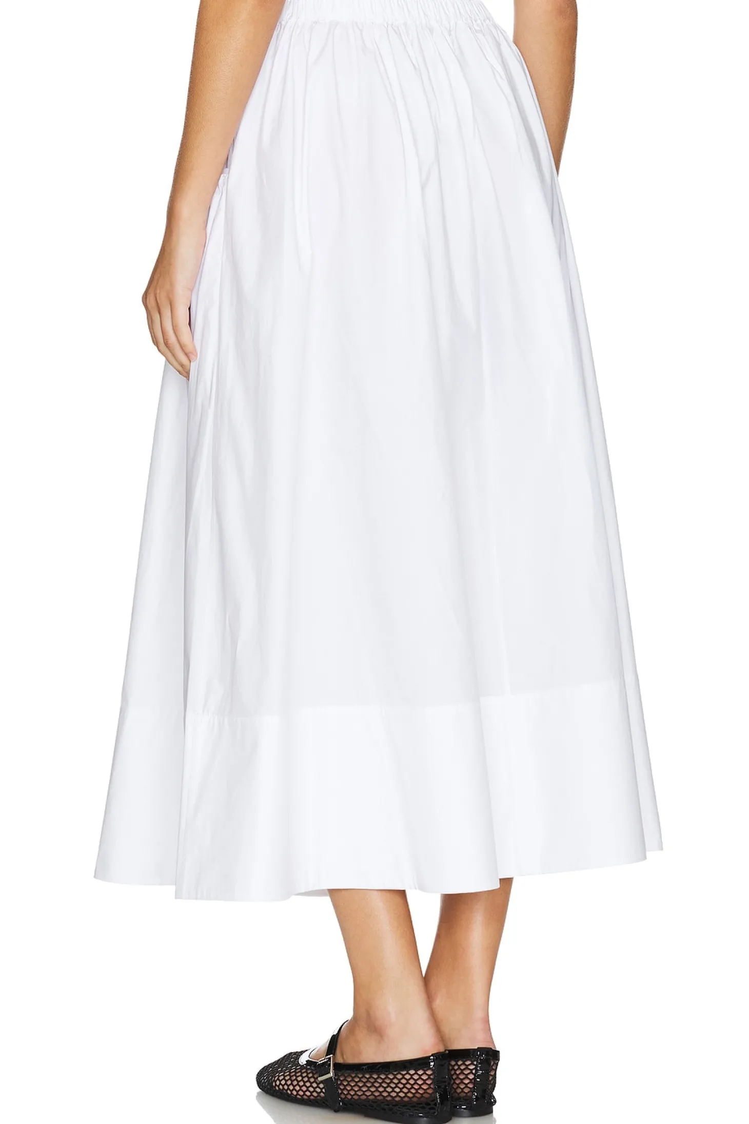 100% cotton.Made in China.Dry clean only.Unlined.Pull-on styling with elastic waistband.Side slant pockets.Midweight poplin fabric Item not sold as a set.Skirt measures approx 35.5" in length