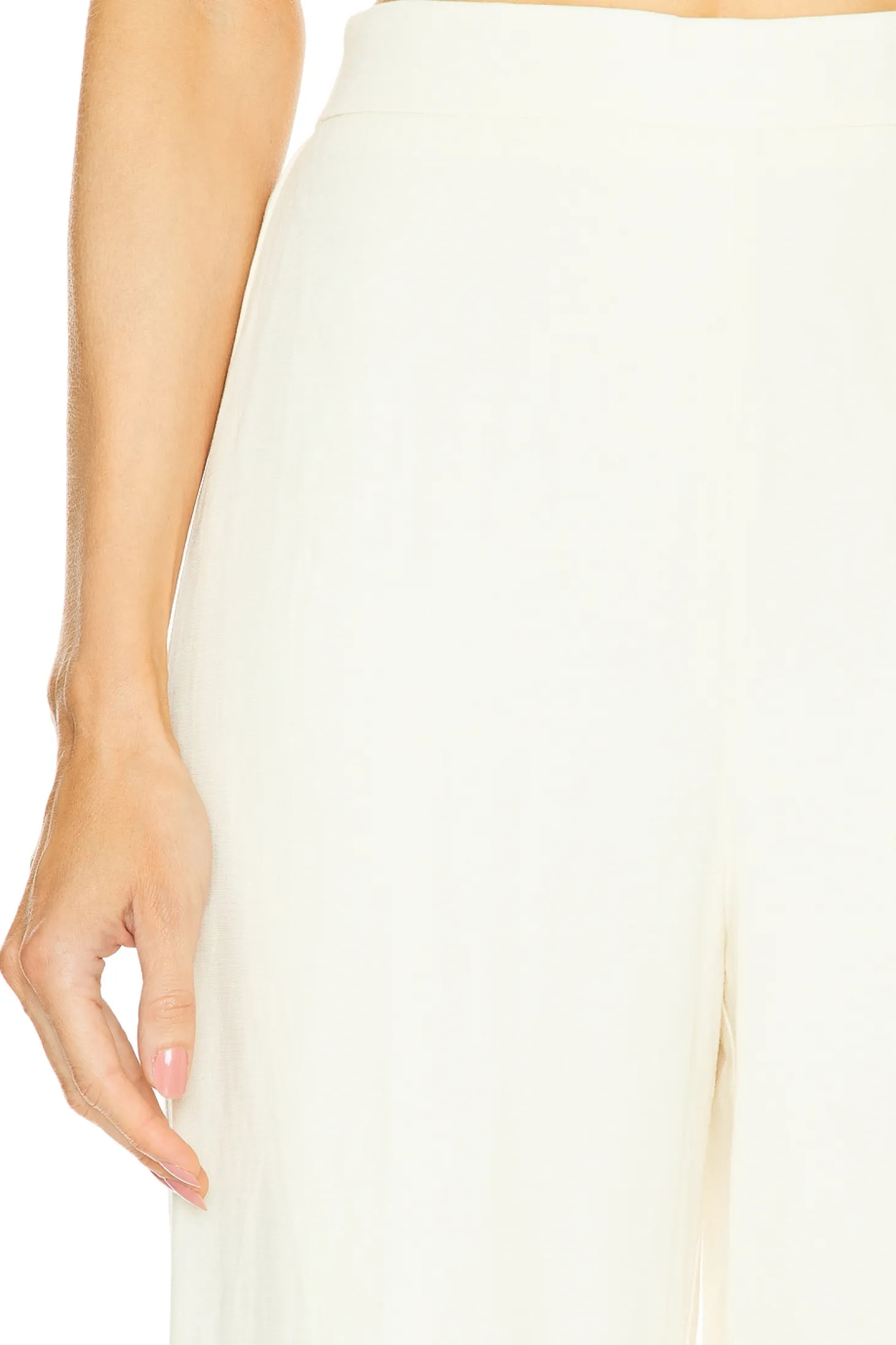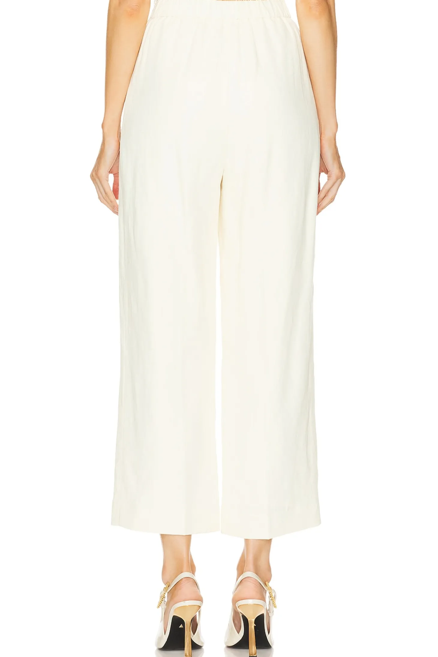 Self: 55% linen 45% lyocell Lining: 100% cotton.Made in China.Dry clean only.Hidden side zipper closure.Elastic back.Linen fabric.Item not sold as a set.20" at the knee and 20" at the leg opening