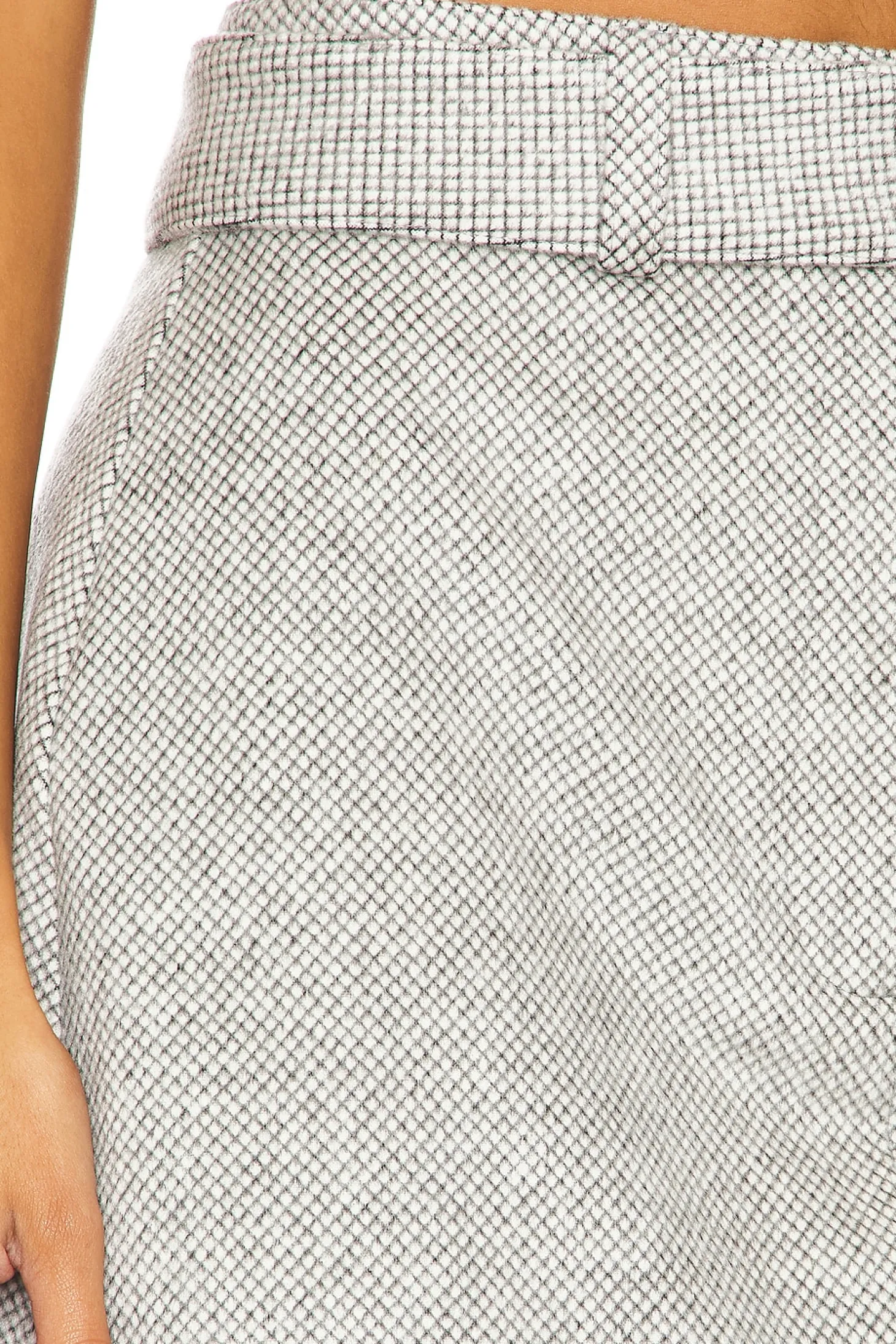 64% polyester 34% viscose 2% elastane.Made in Turkey.Machine wash.Fully lined.Zip fly with hook and bar closure.Attached waist tie.Midweight melton fabric Item not sold as a set.Skirt measures approx 14" in length