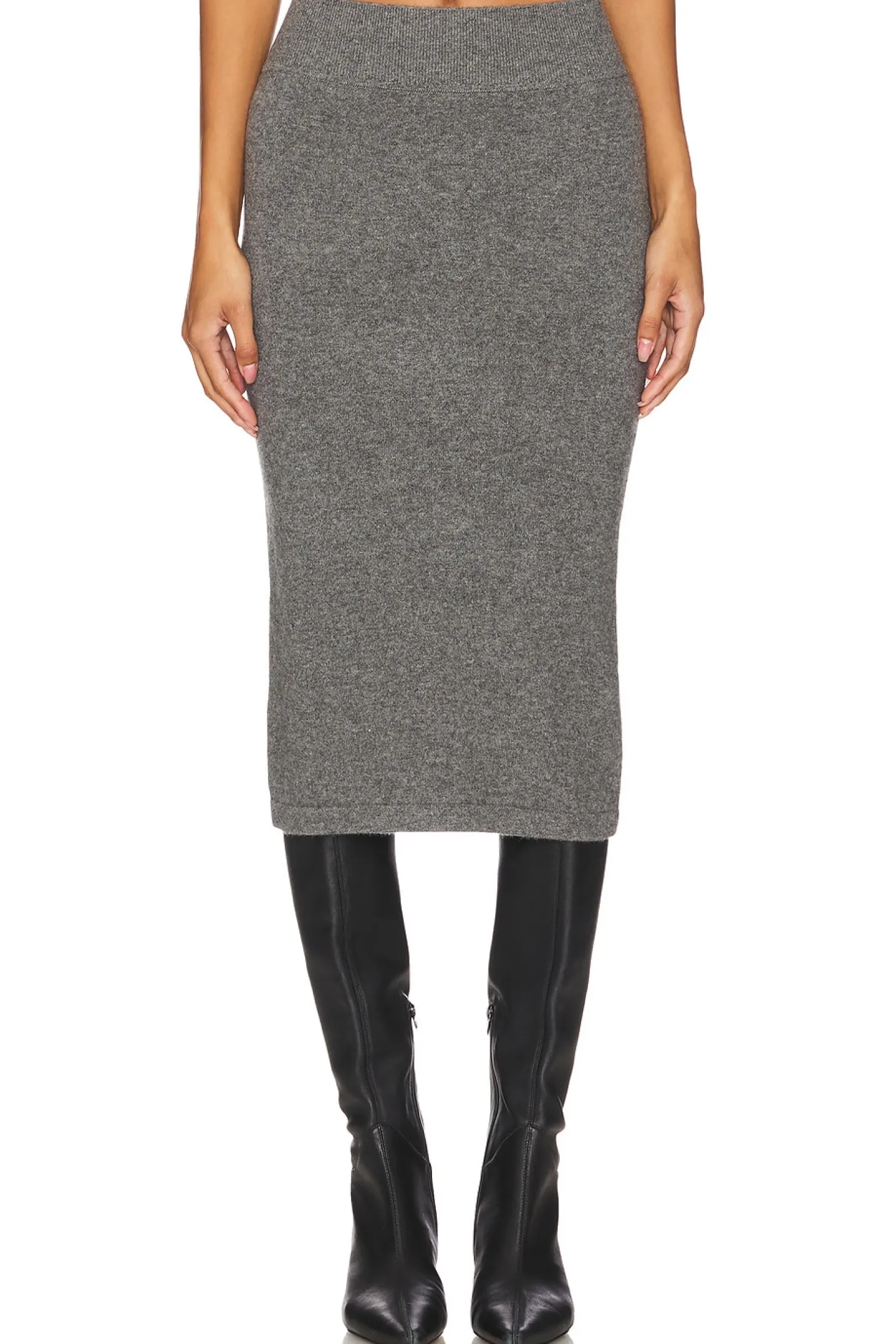 60% recycled cashmere 40% cashmere.Made in China.Hand wash only.Unlined.Pull-on styling with elastic waistband.Item not sold as set.Skirt measures approx 27.5" in length