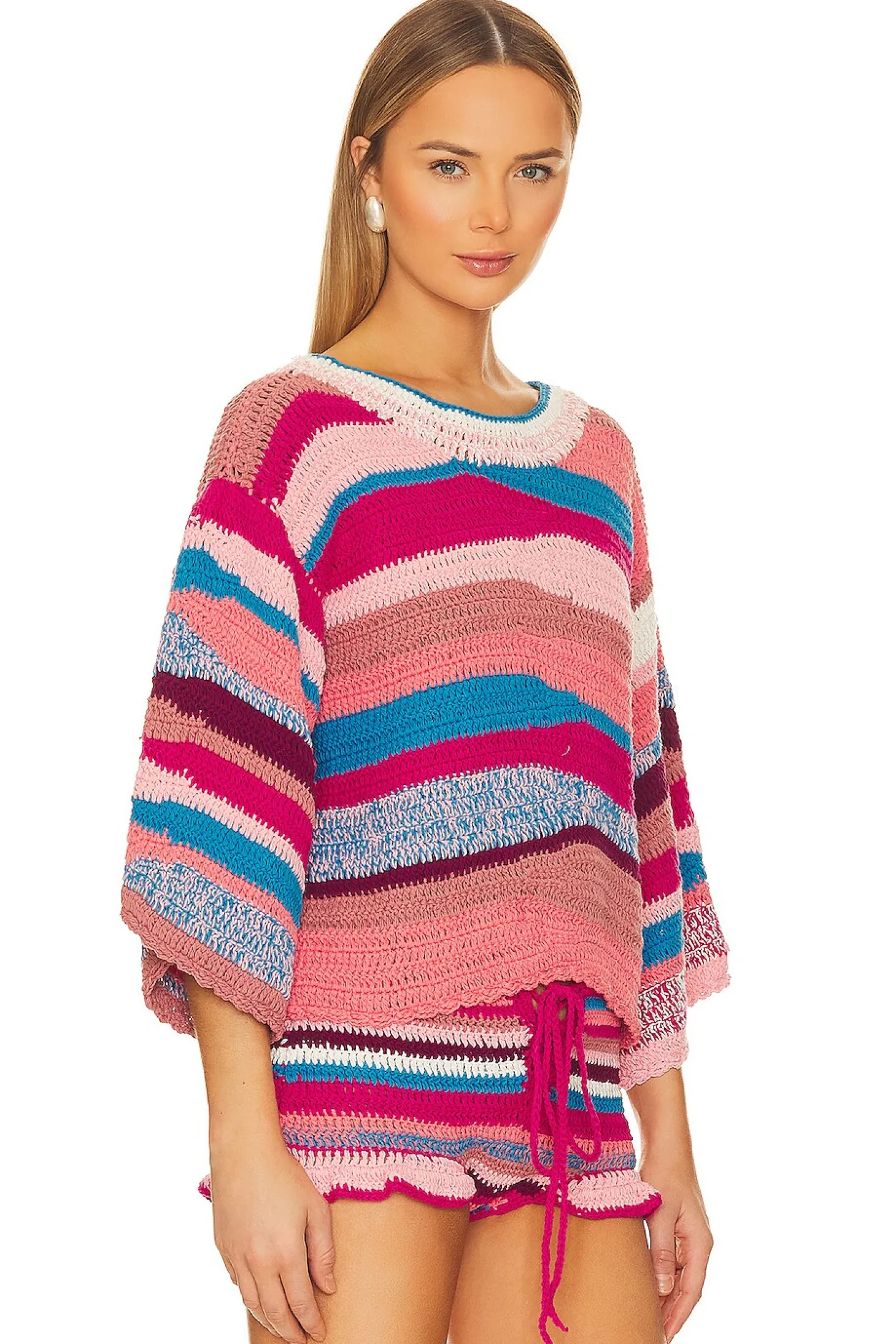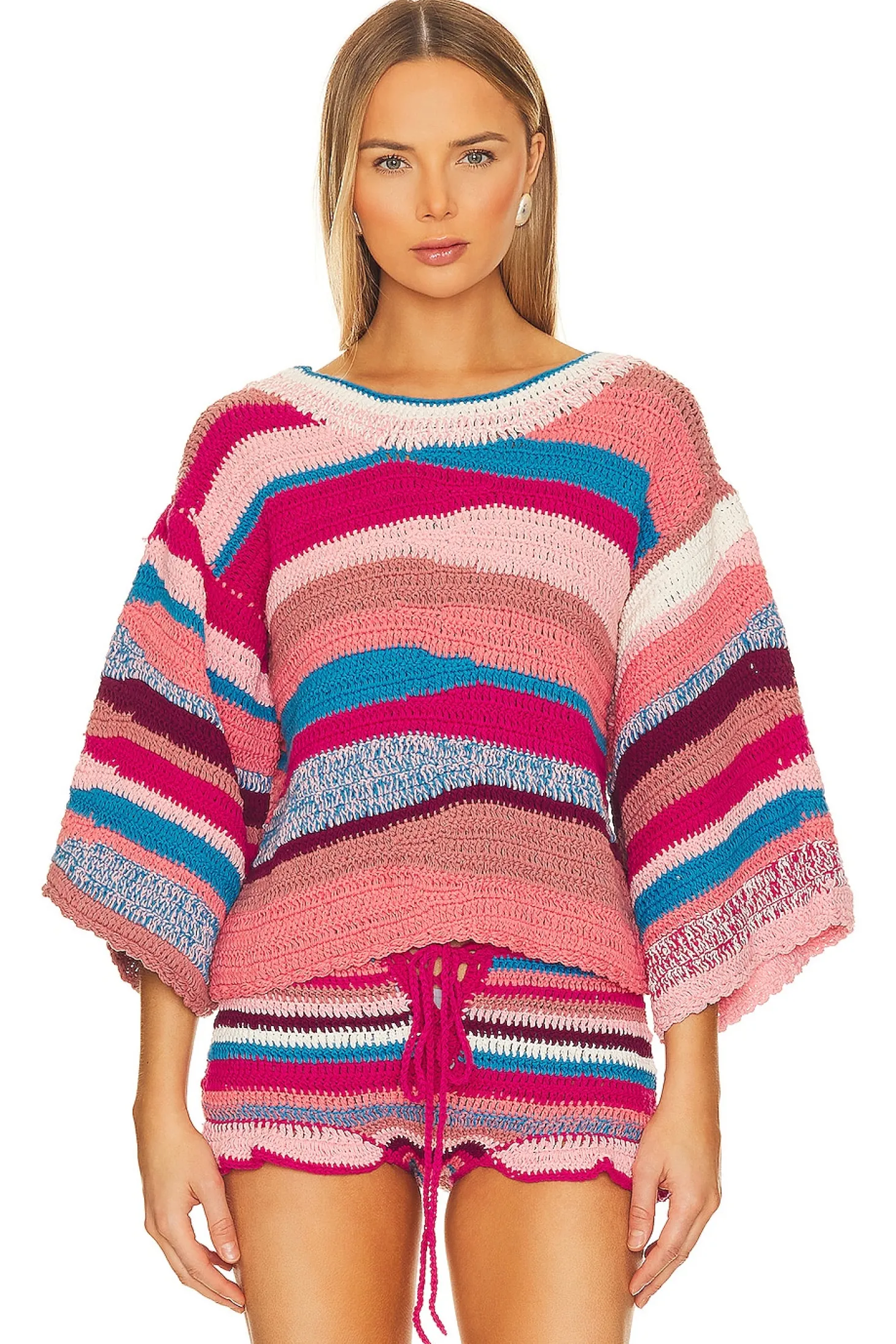 100% cotton .Made in Indonesia.Hand wash cold.Midweight crochet fabric.Item not sold as a set