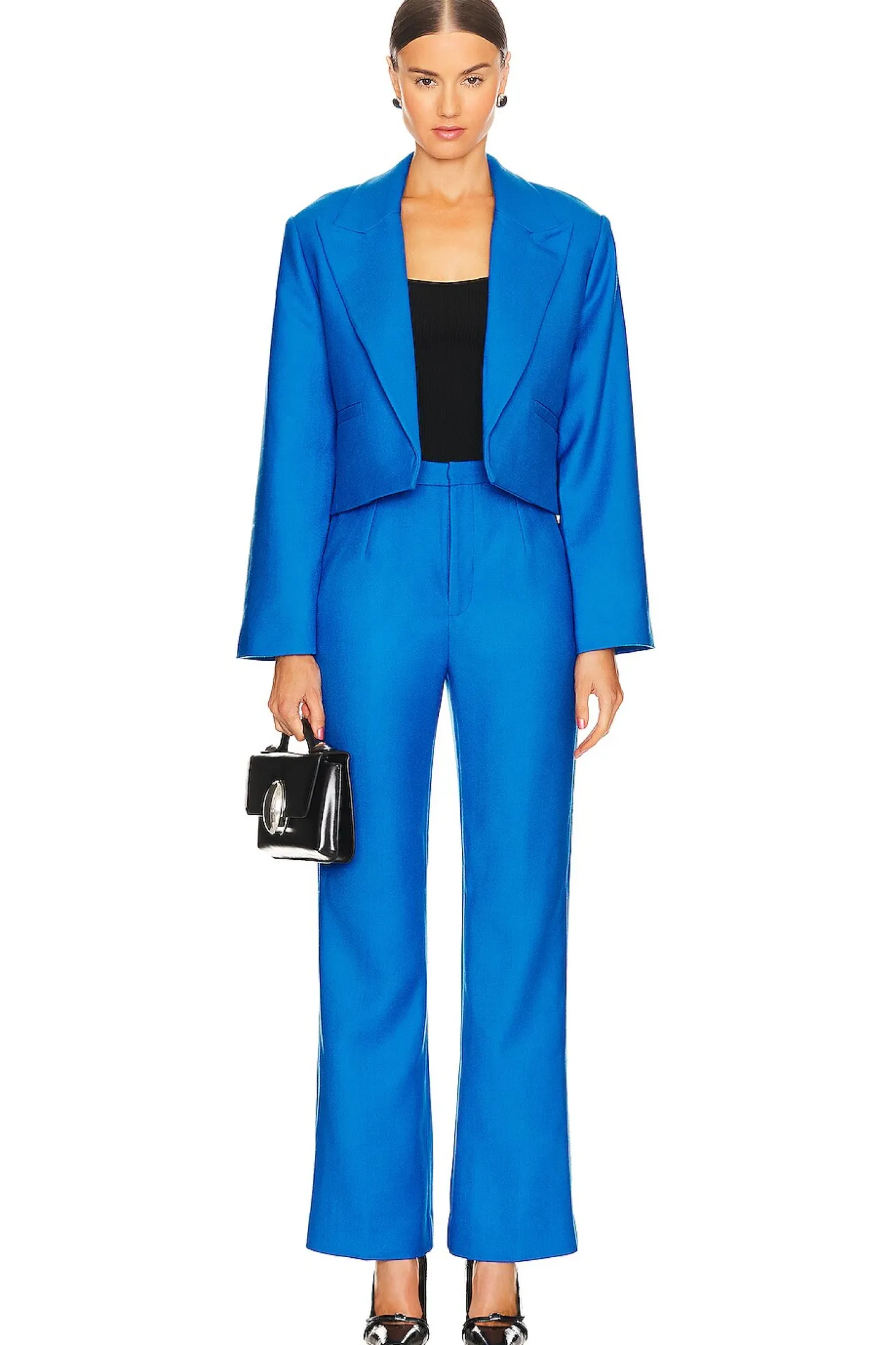 Self: 50% wool 50% wool Lining: 100% polyester.Made in China.Dry clean only.Zip fly with hook and bar closure.Side slant and back slip pockets.Suiting fabric.Item not sold as a set.16" at the knee breaks to 18" at the leg opening