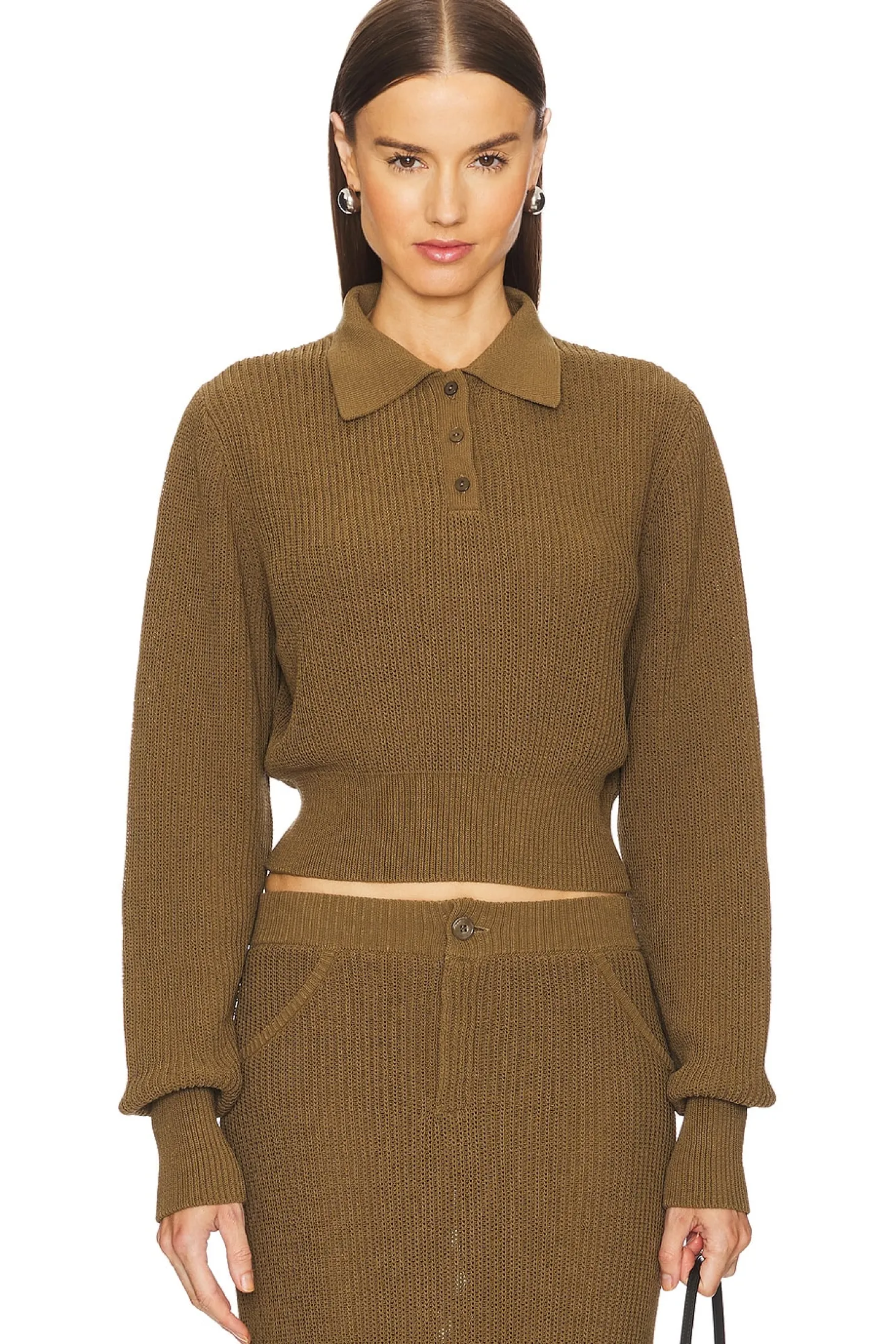 72% cotton 28% polyamide.Made in China.Machine wash.Partial front button closure.Slinky knit fabric.Item not sold as set
