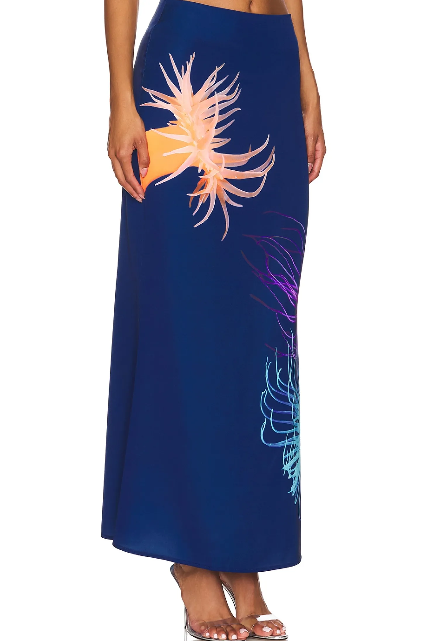 95% polyester 5% spandex.Made in China.Machine wash.Unlined.Hidden side zipper closure.Item not sold as set.Skirt measures approx 39" in length