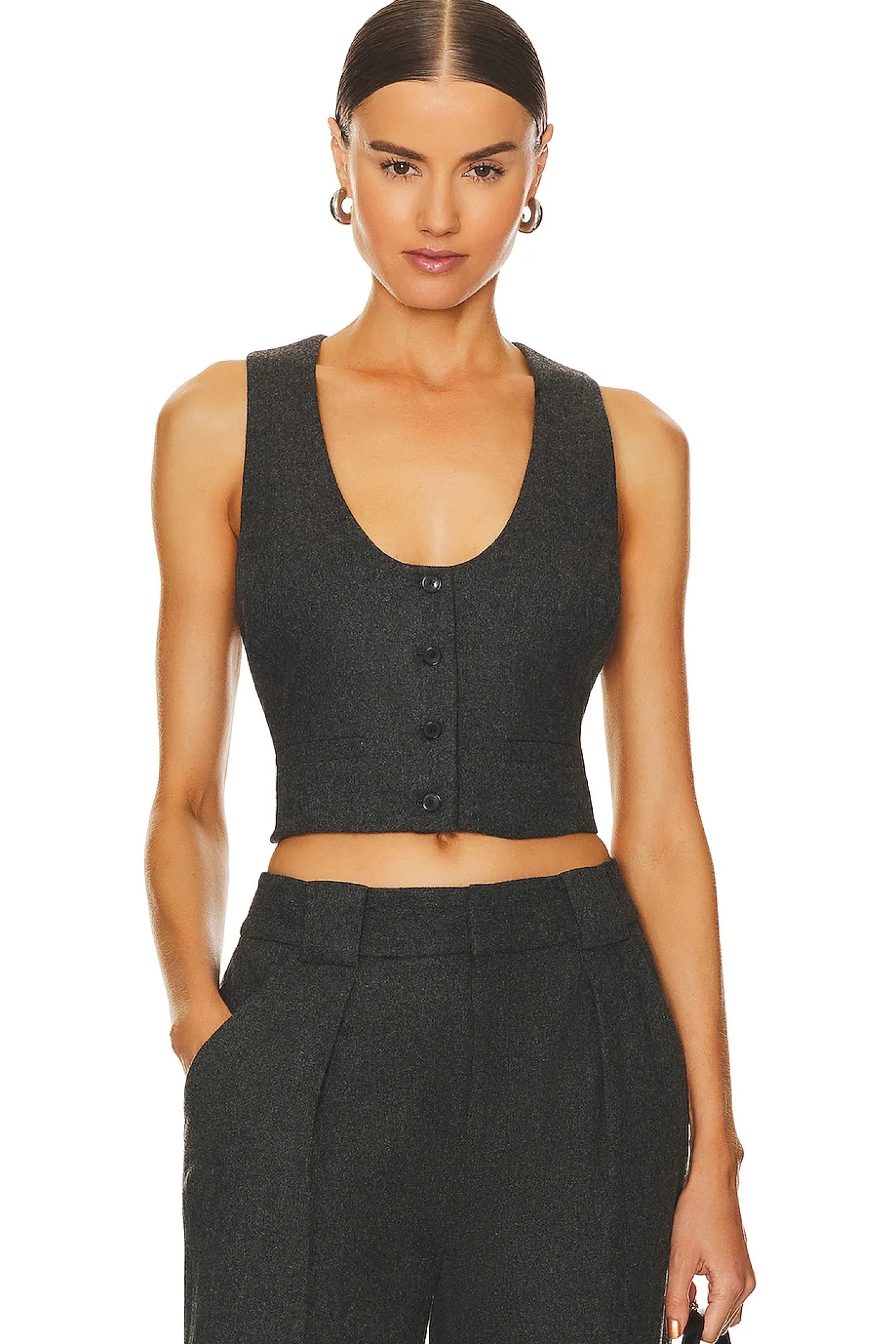 Self: 100% wool Lining: 100% polyester.Made in China.Dry clean only.Front button closure.Back adjustable strap.Lightweight melton fabric.Item not sold as a set