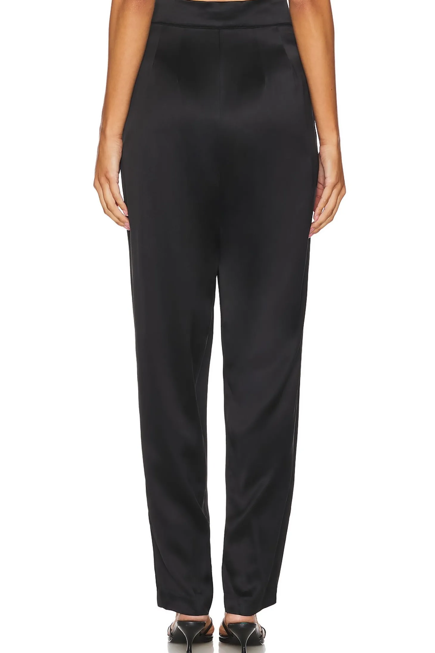 77% triacetate 23% polyester.Made in China.Dry clean only.Zip fly with hook and bar closure.Side pockets.Lightly pleated satin fabric.Item not sold as set.22" at the knee narrows to 19" at the leg opening