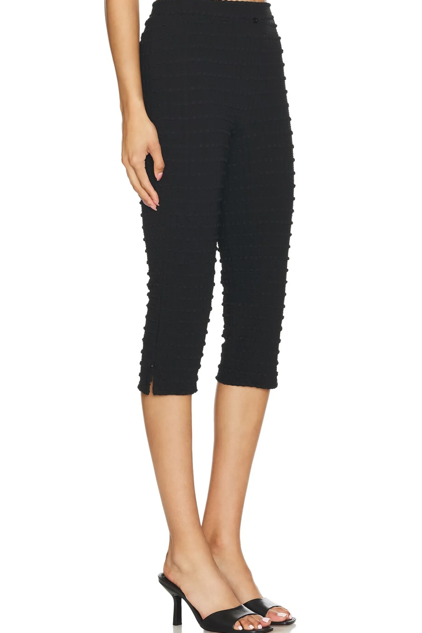 Textured textile.Imported.Hand wash.Pull-on styling.15" at the knee narrows to 13" at the leg opening