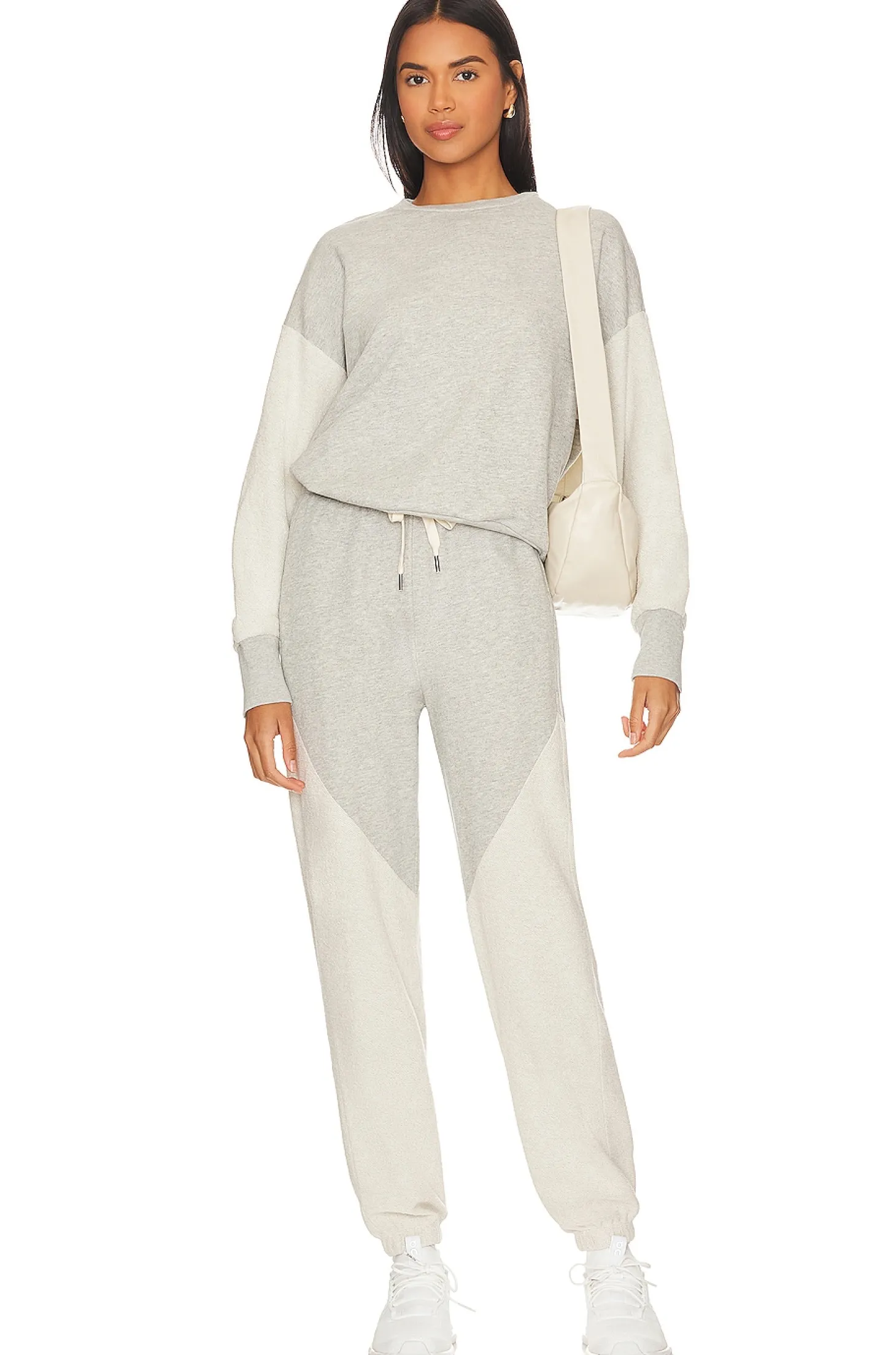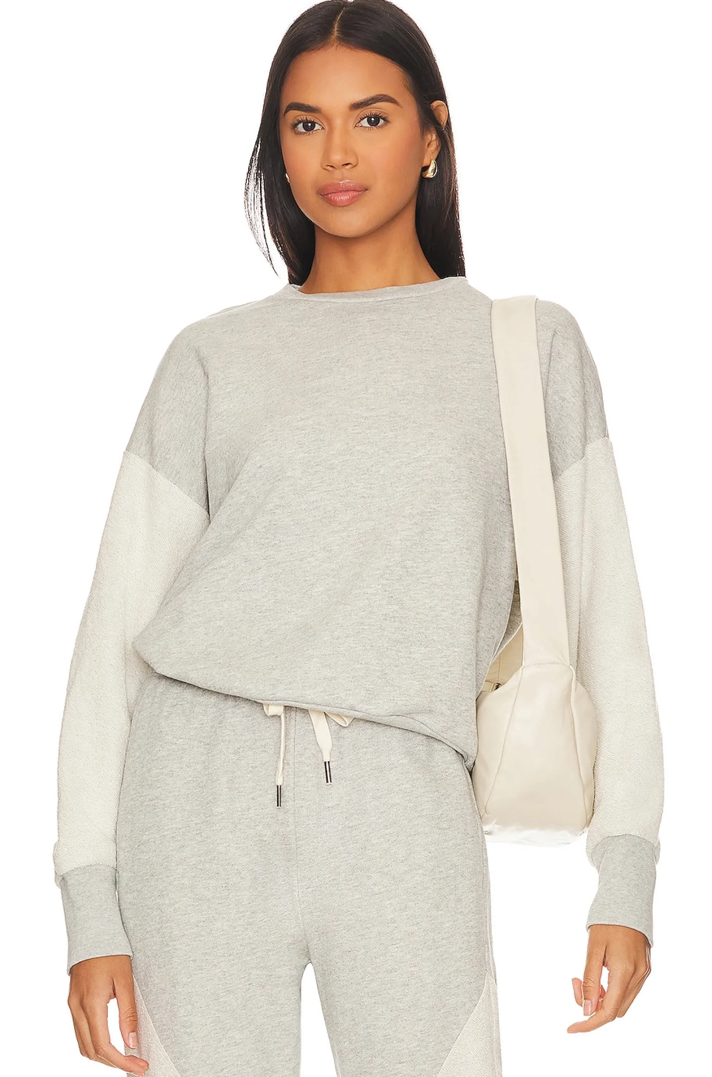 100% cotton.Made in USA.Machine wash.Colorblock design.French terrycloth fabric.Item not sold as a set