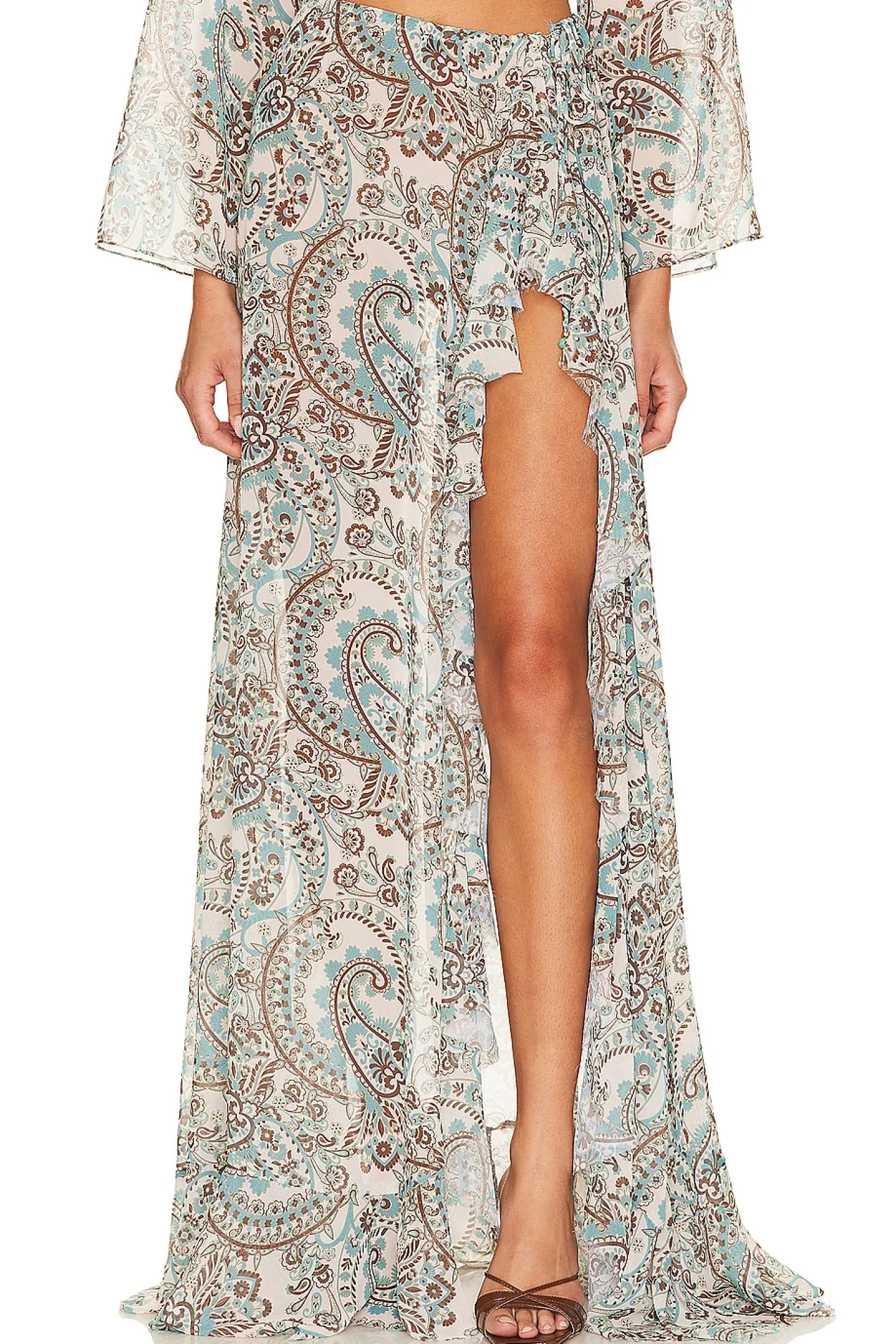 100% polyester.Made in Thailand.Hand wash recommended.Unlined.Drawstring waist tie closure.Lightweight chiffon fabric with cascading ruffle detail.Item not sold as a set.Skirt measures approx 51" in length